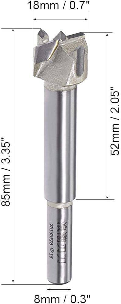 Forstner Drill Bits: Drilling diameter: 12mm / 0.47"; shank size: 8mm / 0.3"; drilling depth: 12mm / 0.47"; total length: 83mm / 3.3". Strictly designed and repeatedly tested carbide tip improves efficiency, durability and noise reduction. Solid hardened 45# steel body, round shank forstner bits for woodworking.