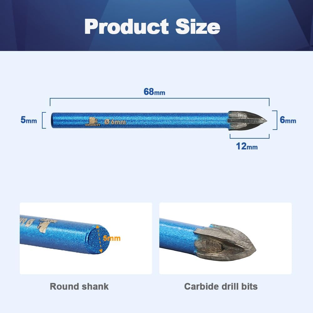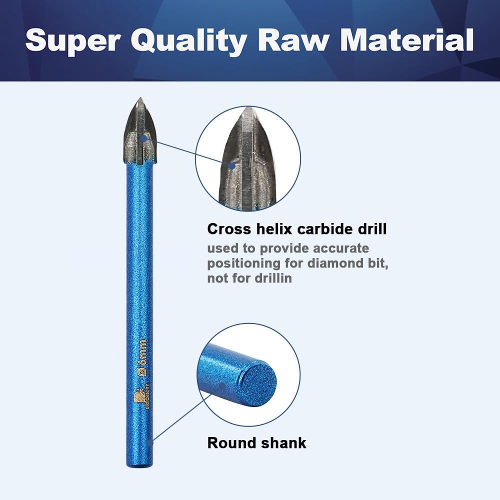 When you are building/remodeling a bathroom or kitchen like installing shower or install the faucet and handles in bathroom, you will need to drill holes through Porcelain tiles without cracking them, so you could use our diamond tip drill bit to make those holes very precise This tile hole cutter adds wax lubricant inside. During drilling, the wax will melt to cool the cutting surface, add additional water can prolong the working life of the bit and to remove the debris during the drilling process. This porcelain tile drill bit Creates a high precision, you could drill smoothly with no broken edges,Using this bit in an angle grinder will like a hot knife through butter For a better finish and longer duration of the tile hole saw,you could start on a slight angle to get through the top finished surface, then with light pressure carefully work through the tile. The average life of the porcelain tile drill bit depends on several factors,including the type of aggregate and material, its thickness/hardness ,proper cooling and use Package includes: 20pcs 1/4 Inch 6mm. Supplied in square plastic box Quality Creates Better Life. All our products are subjected to strict quality tests. We want all the products can be recognized for their quality and durability.