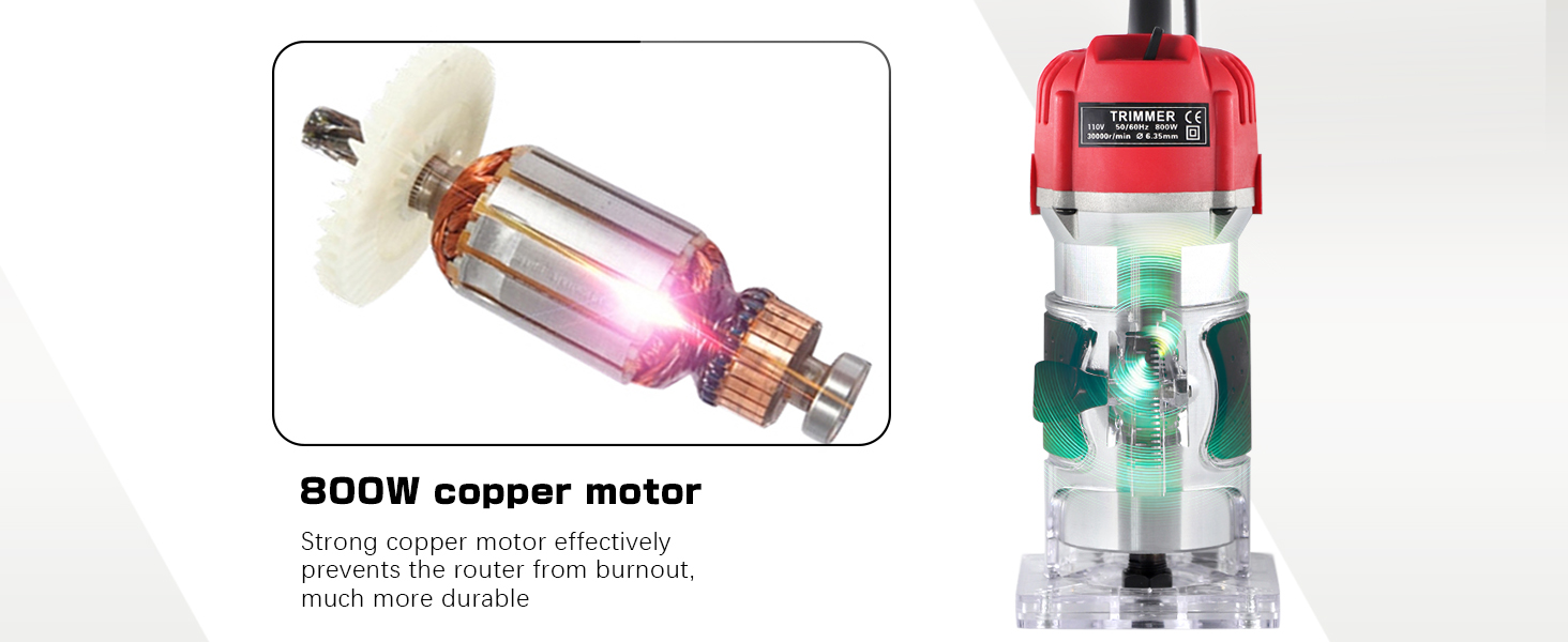 【Excellent Wood Router】-- Built-in 800W strong copper motor and made of high quality Aluminum+Plastic, also got the UL testing certificate, this compact handheld router is more effective and durable than other wood routers