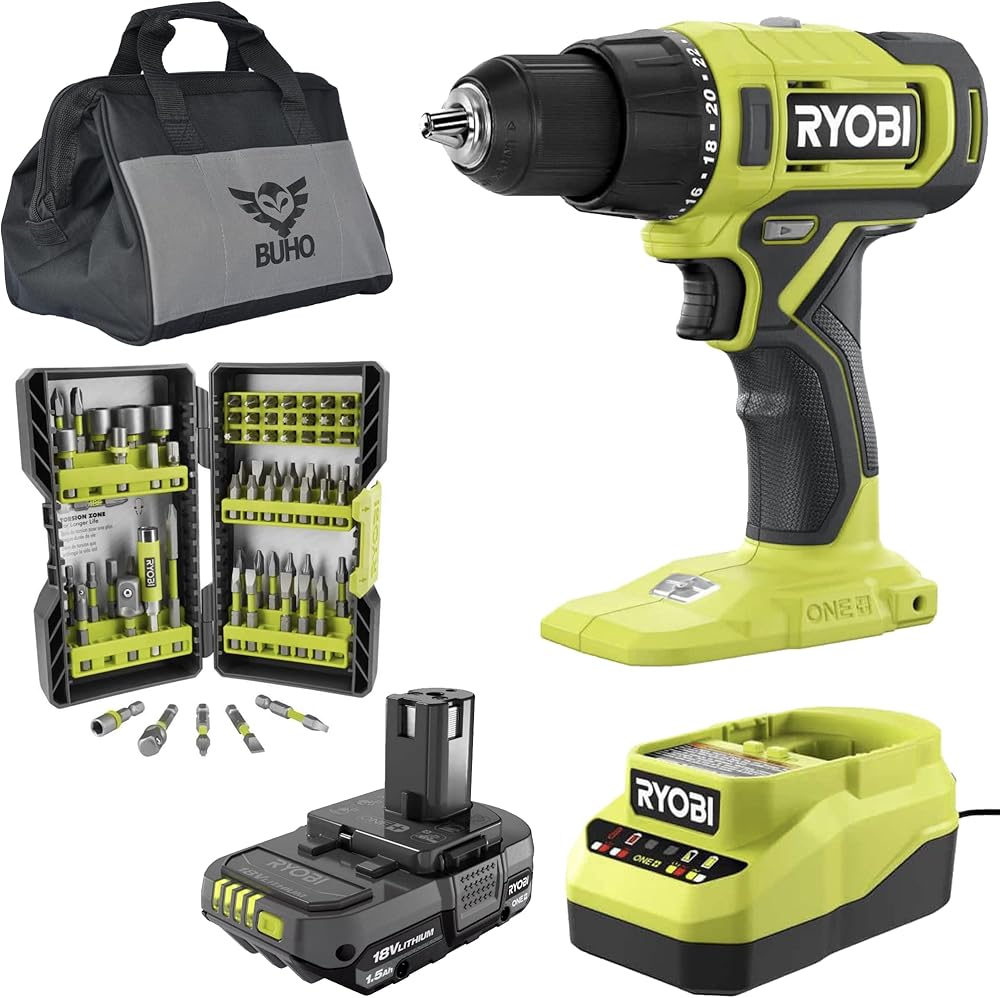 Cordless 1/2 inch Drill Driver Bundle - Includes Cordless 1/2 Drill Driver, 70 Piece Drill Bit Set, 18-Volt Lithium-ion Battery, Charger and Tool Bag
