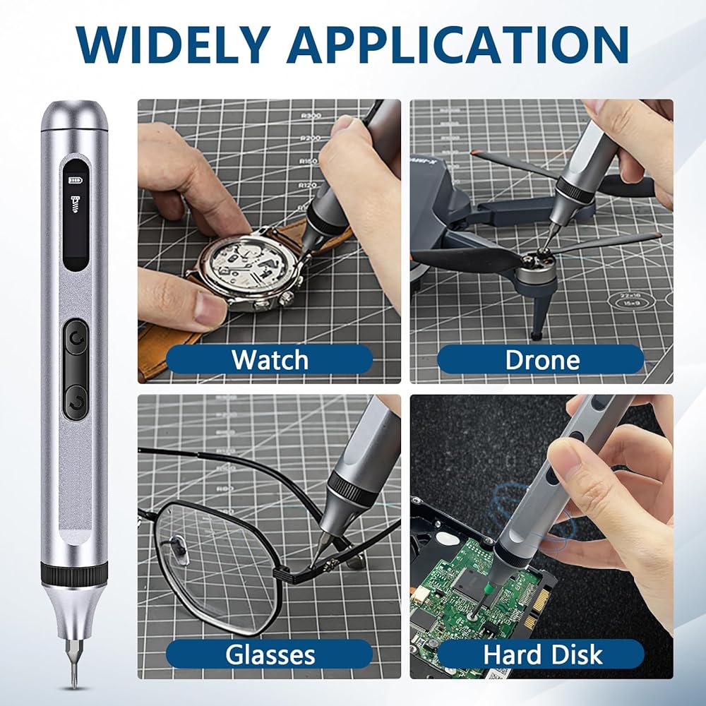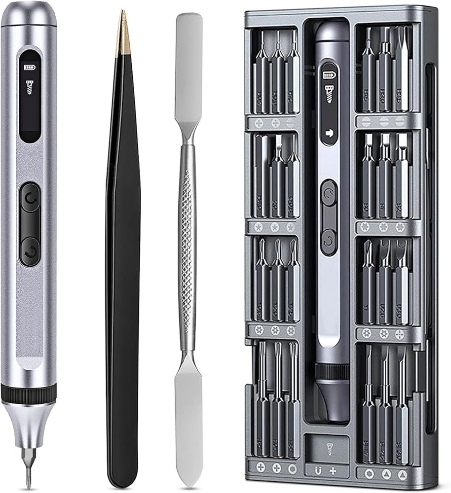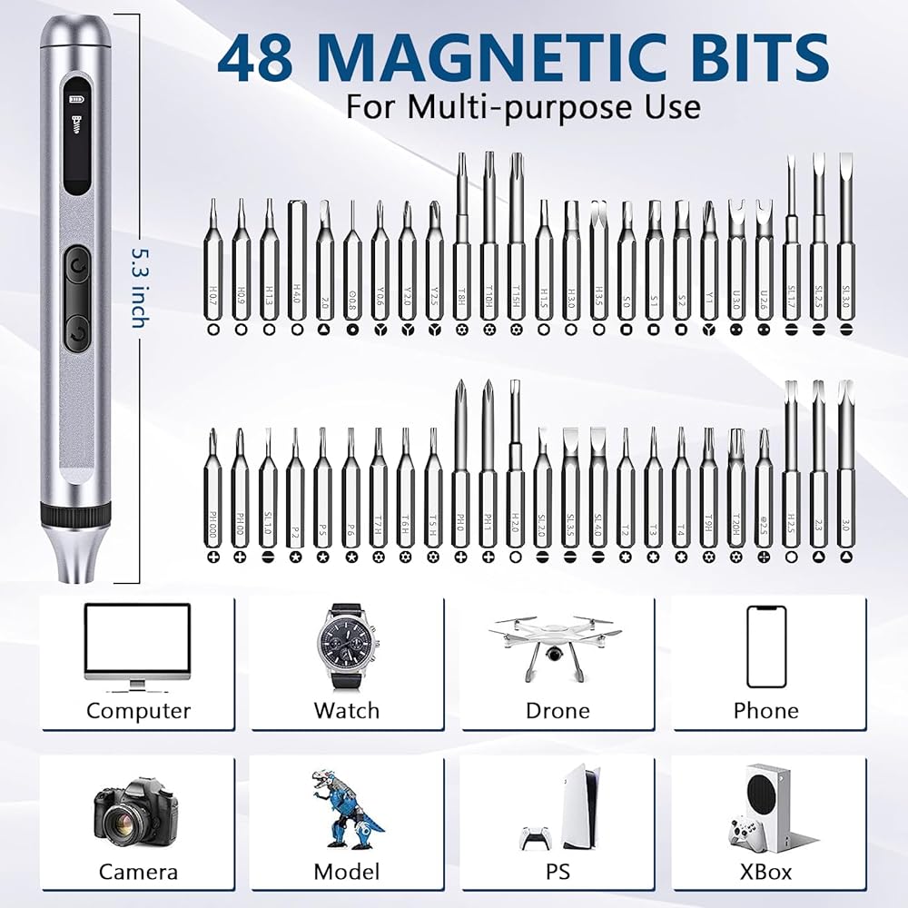 52 in 1 Kits: Our precise electric screwdriver set is equipped with 48 different types of S2 steel bits, 1 mini electric screwdriver, 1 tweezers, 1 crowbar and 1 magnetic case. This set is perfect for assembling and disassembling most electronics products such as tablets, computers, mobile phones, cameras, drones, and more. It's a must-have for anyone who loves working with electronic equipment.