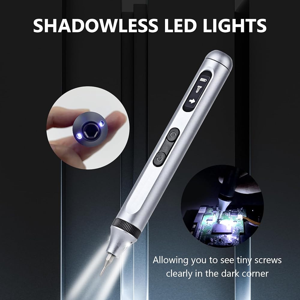 Shadowless LED Lights: Our portable automatic motorized screwdriver comes with 2 shadowless LED lights embedded in it. These lights illuminate the working area and dim corners, allowing you to maintain clear visibility in the darkness. This makes it an ideal present for Fathers' Day.