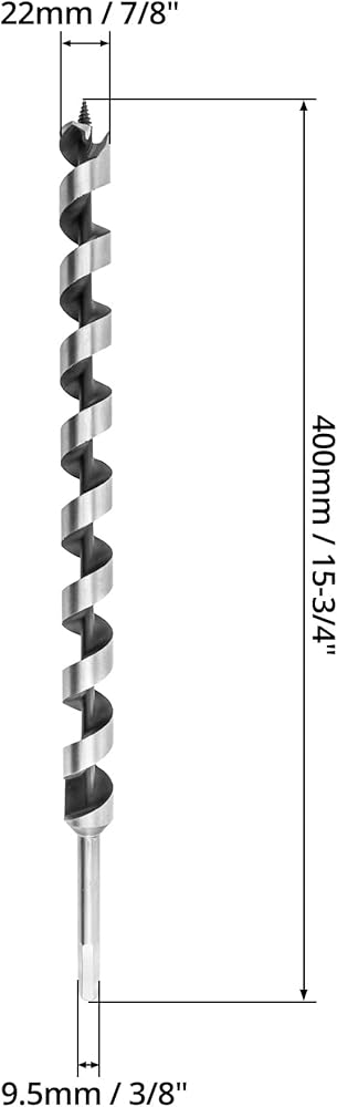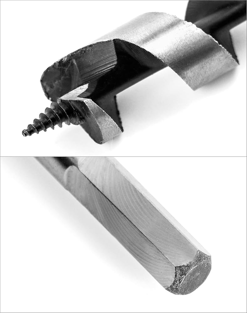 QWORK Auger Drill Bit Set, 7 Piece Set 9" Auger Bit Set Hardened Alloy Steel Ship Auger Bit Creates Deep Clean Hole Precise Drilling for Wood Drilling 1/4", 3/8", 1/2", 5/8", 3/4", 7/8",1"