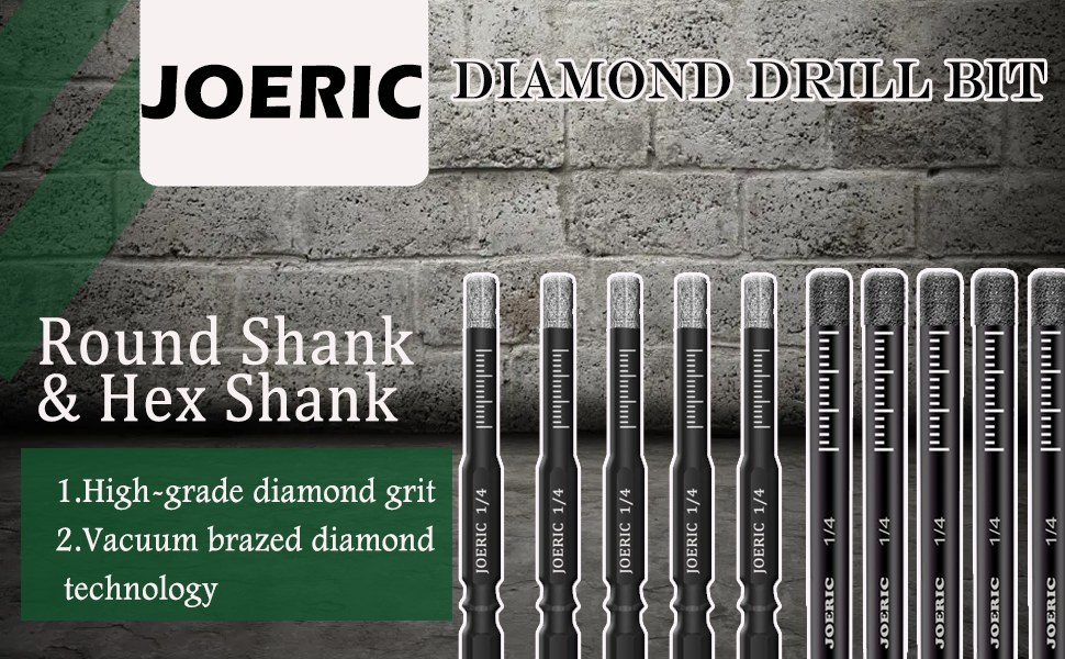 🌻Two kind of different 1/4" Diamond dry core bits shank: 5pc 1/4'' (6mm) hex shank diamond dry core bits and 5pc 1/4'' (6mm) round shank diamond dry core bits. Meet the needs of experiencing different drilling. Surface plating can prevent the drill bit from rusting.