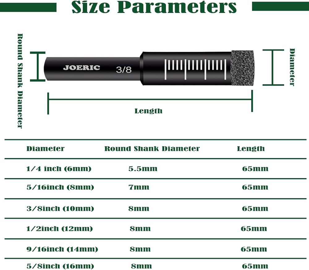 🌻Widely compatibility: Diamond coating increases drilling speed of the granite drill bits; hex shank and round shank is compatible with most machines, such as hand drills, , table drills; depth mark is also useful for precise projects