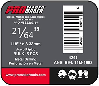 Metal drilling for common steel and simple use, ANSI B94. 11M-1993, Size: 7/16inches, Quantity: 05 PCs