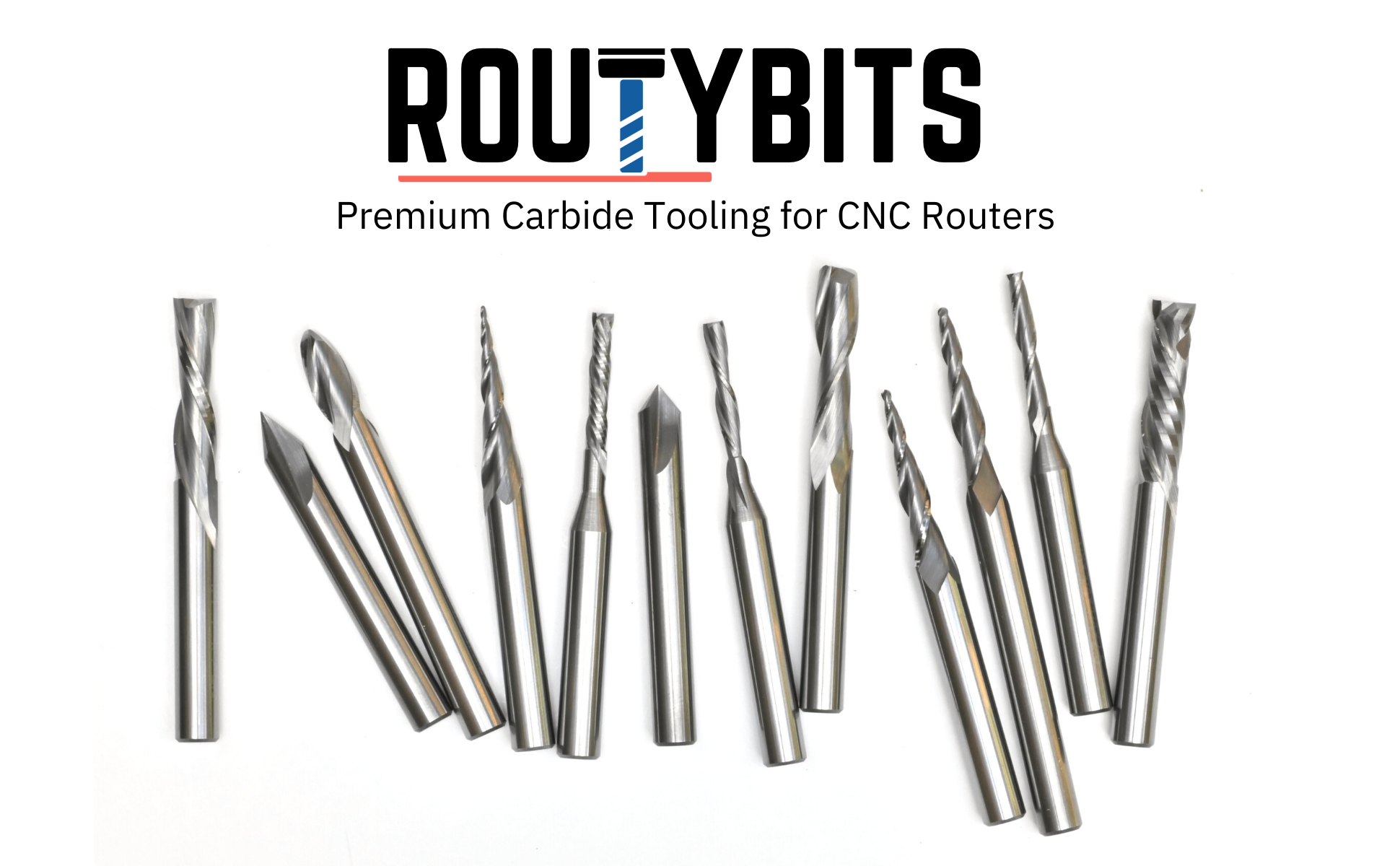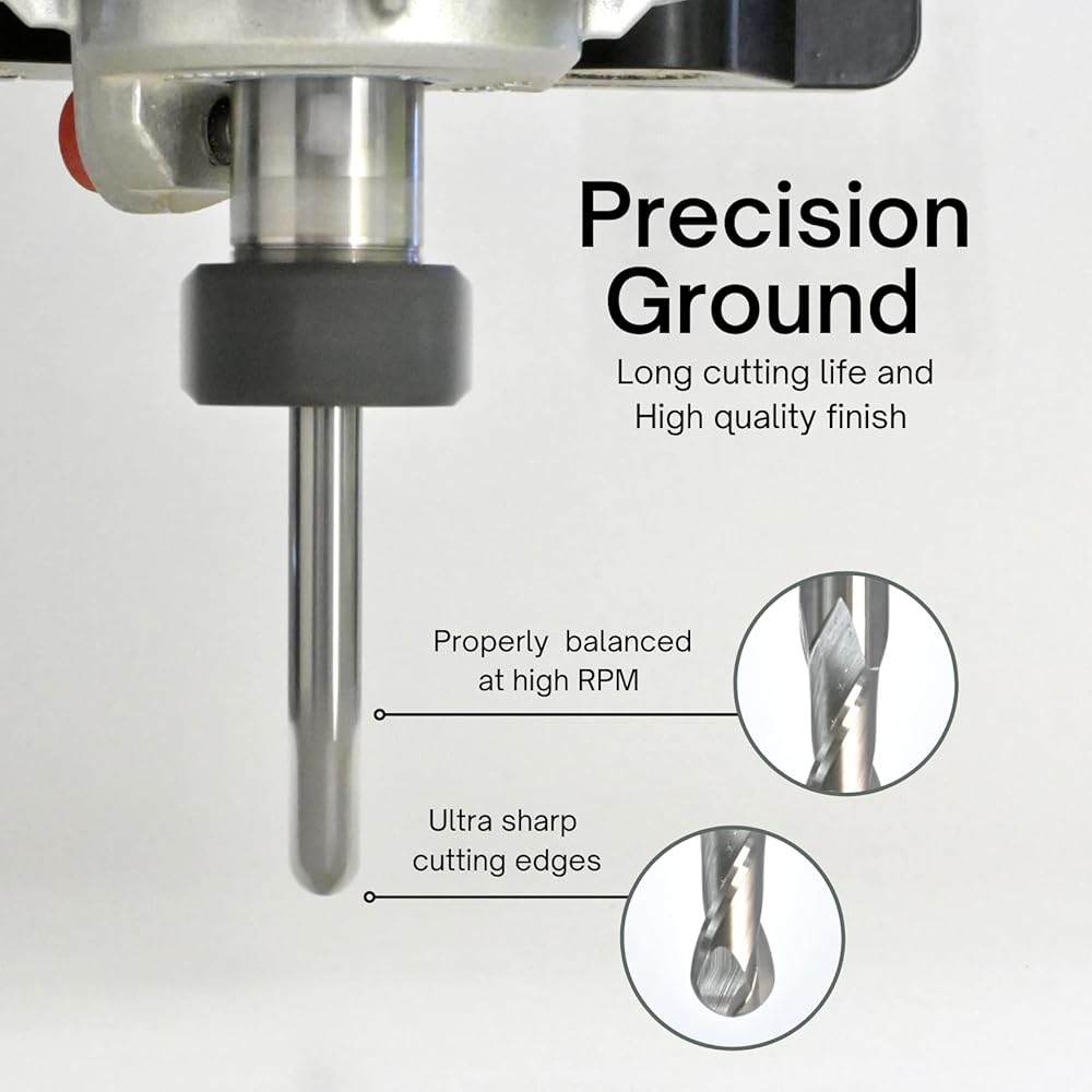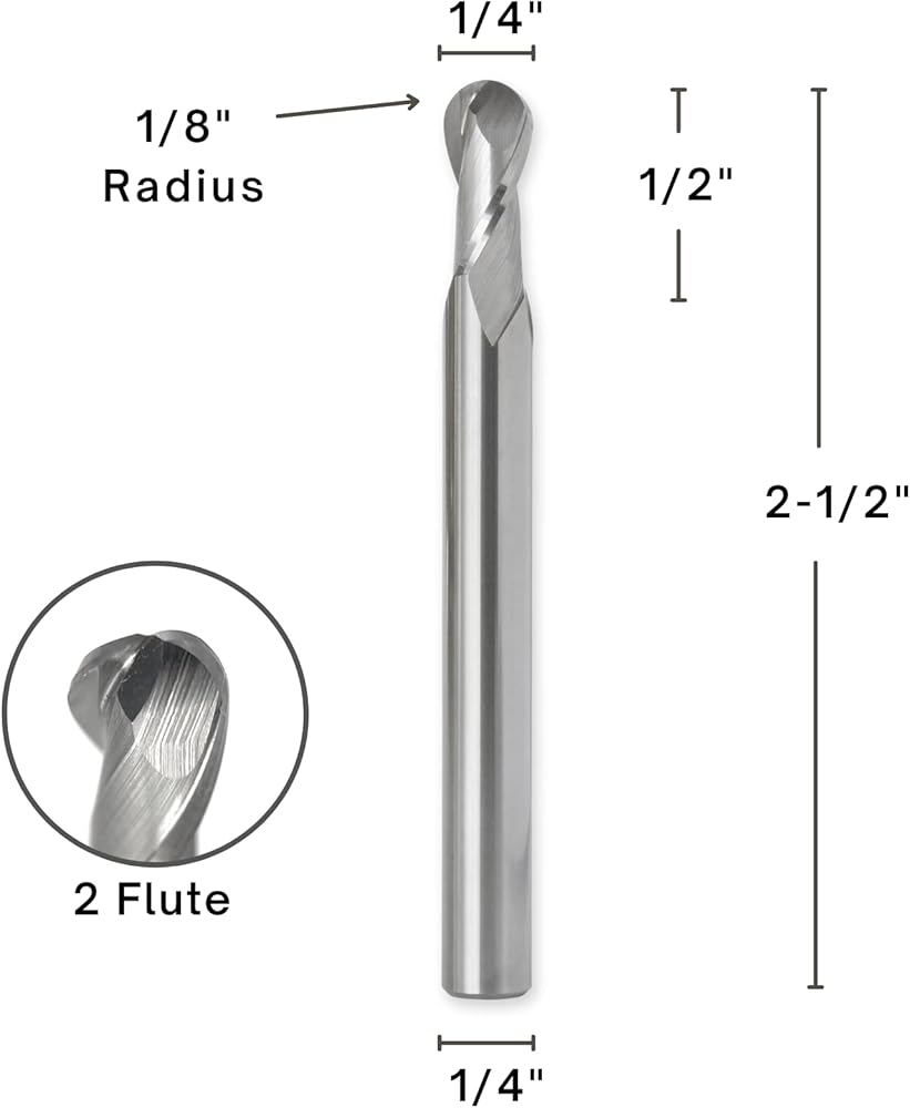 ROUTYBITS - 1/4 بوصة - ريشة أنف الكرة - 1/4 شانك، 1/2 بوصة. FL، كربيد صلبة، مطحنة حلزونية، قطع راوتر CNC