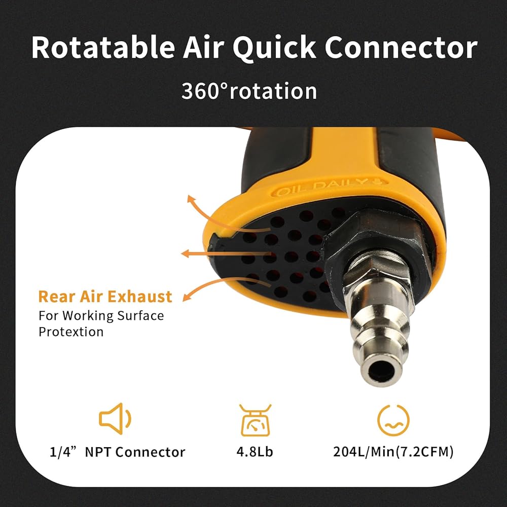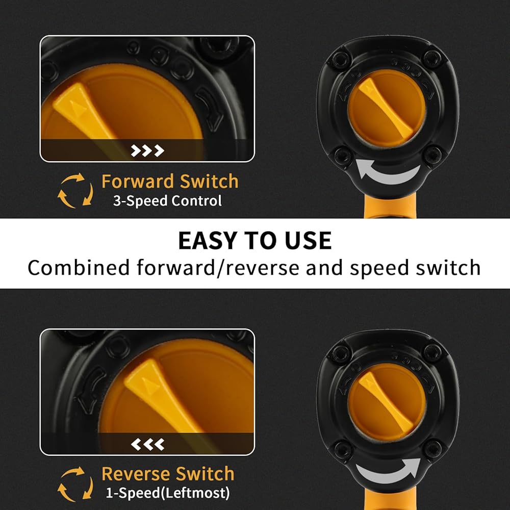 [EXCHANGE KNOB] The air impact wrench has adjustable torque, and uses the exchange knob to select the counterclockwise or clockwise rotation. Adjustable torque can meet various demands of different applications like automotive repair and maintenance, and construction engineering.