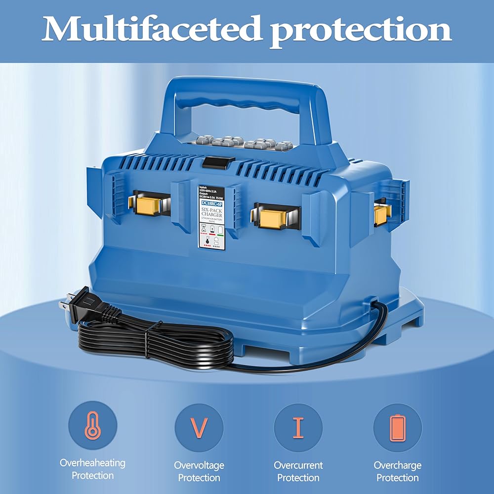 ⭐【Efficient & Convenient】It is great to be able to charge 6 batteries and do all the work with only one outlet plug. It is a good choice for use in the garage or studio. You can use it as a storage device when you're not charging, so you can easily manage multiple batteries.