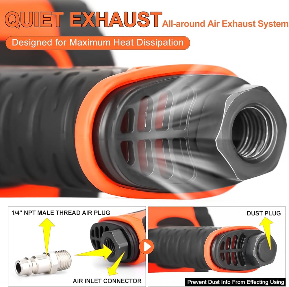 【LIGHTWEIGHT & ERGONOMIC】Weighing only 5.3 pounds, this air impact gun is compact and lightweight. The ergonomic design and non-slip grip provide a comfortable grip and security, reducing fatigue and improving the user experience.