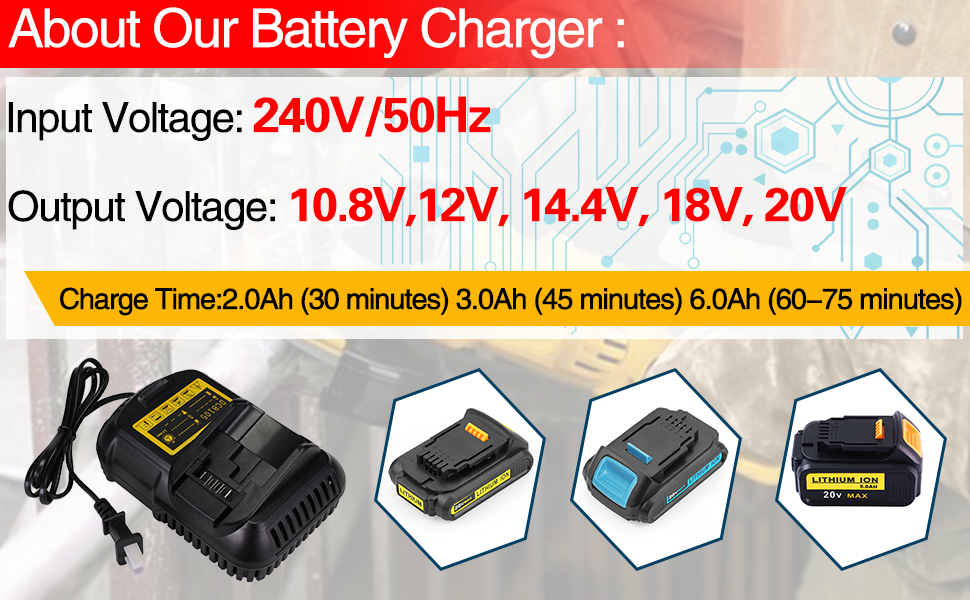 Battery Chargers are made with high quality PC material, Best-in-class construction with long-lasting performance and durability. Effective to keep your electric tools in working condition