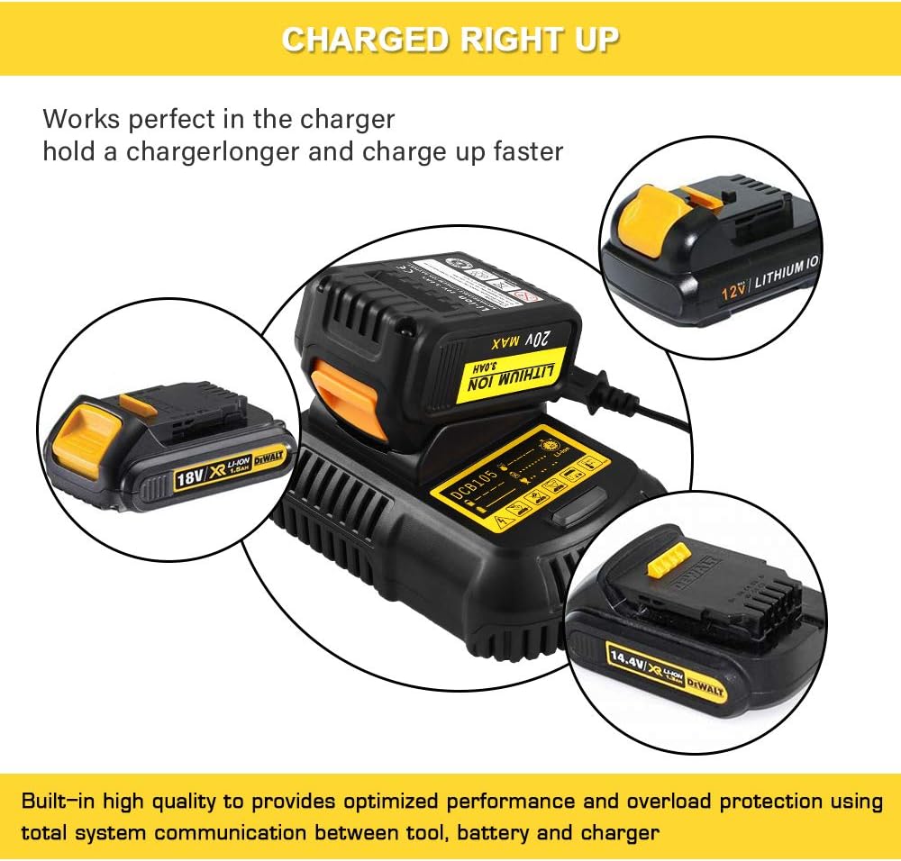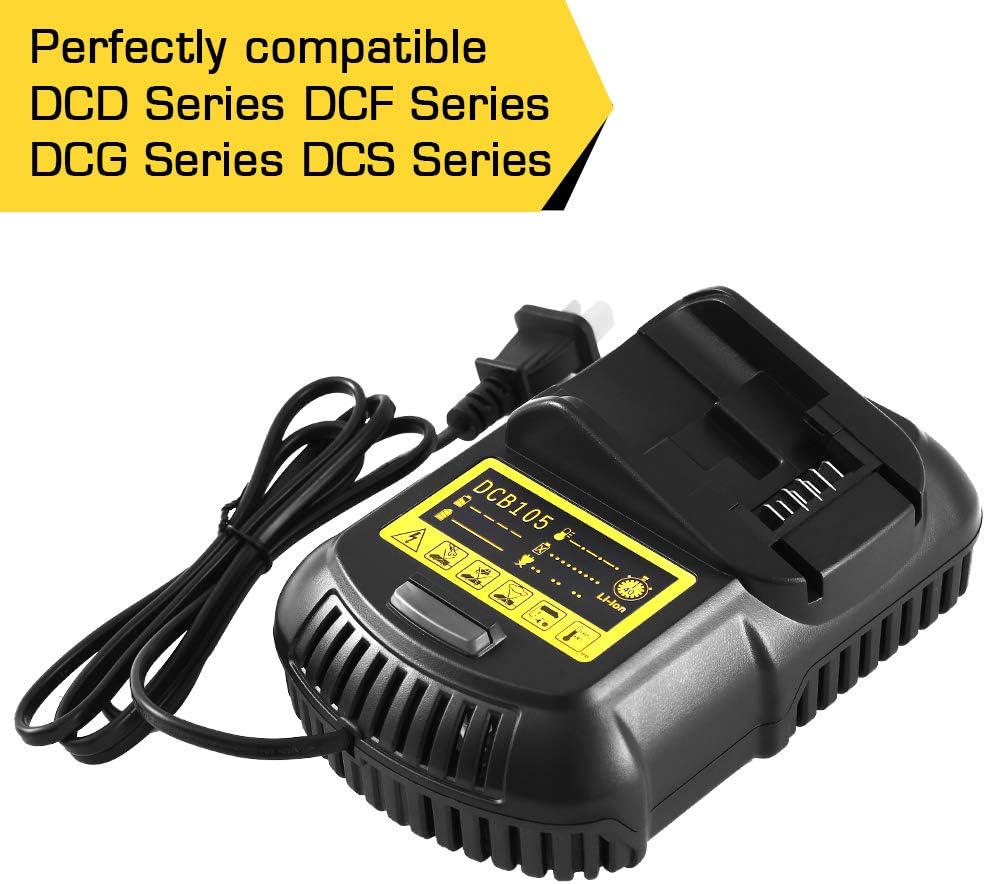 Replacement charger for Dewalt 12V/20V Battery.Compatible with DCB120 DCB127 DCB200 DCB203 DCB204 DCB204BT DCB606 (Blue or Yellow Randomly Sent)