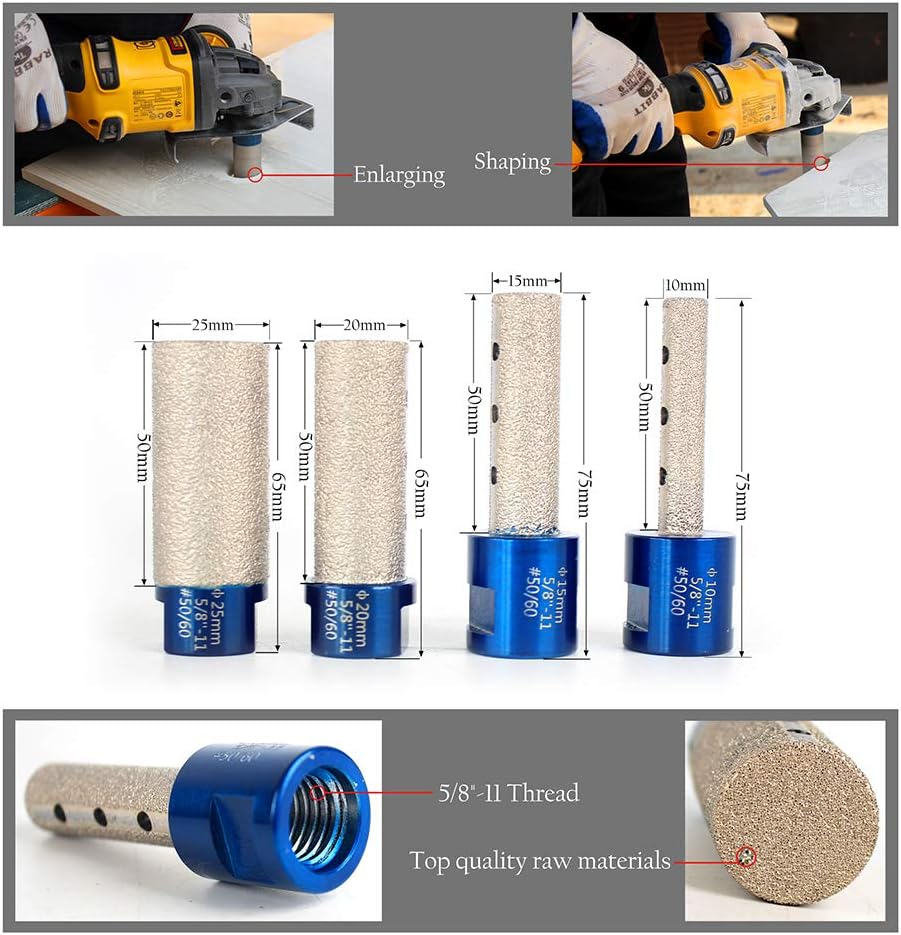 Raizi Universal Diamond Finger Drilling Milling Bit For Enlarging and Shaping Holes on Porcelain Ceramic tiles, Granite, Marble, Quartz and Engineered stone