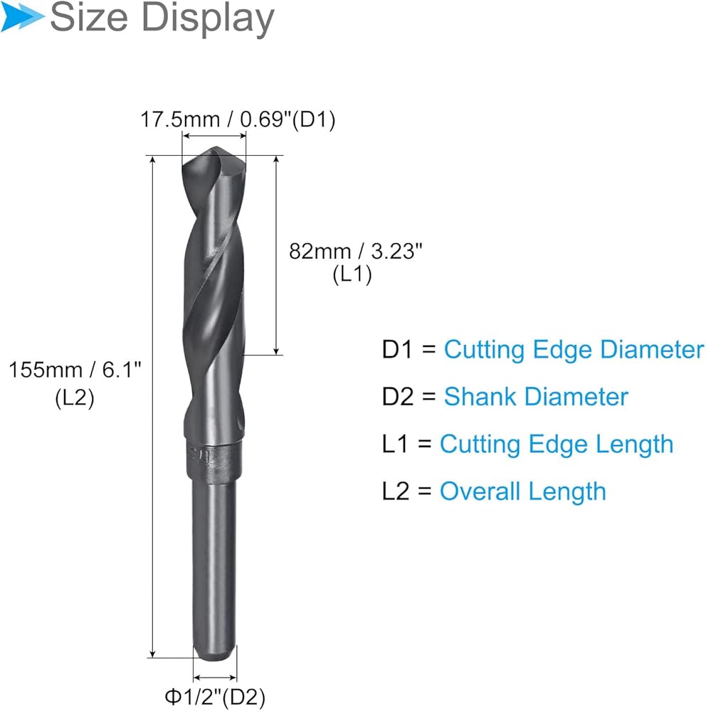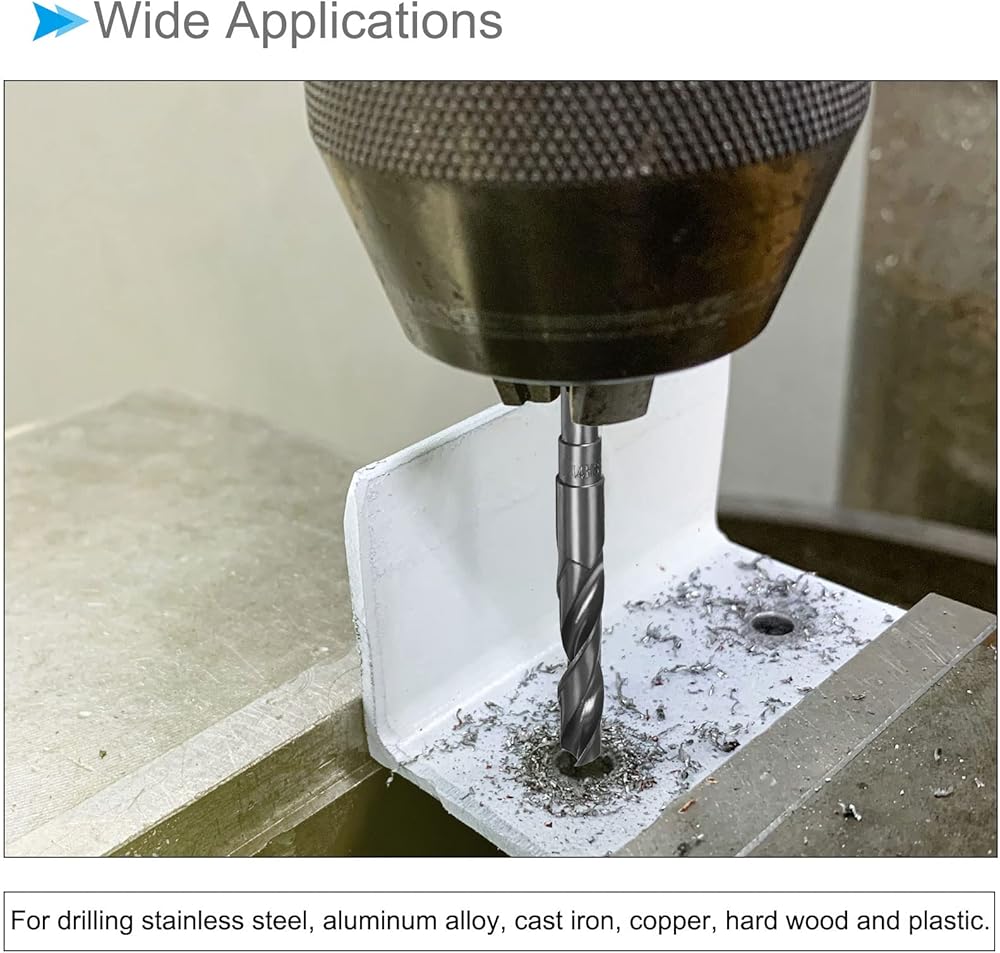 --- Widely used for drilling stainless steel, aluminum alloy, cast iron, high carbon steel, copper, hard wood, hard plastic, and other metal materials in maintenance departments, machine shops, and other industries. Reduced shank drill bits expand the size range capacity of portable drill chucks. Use on drill presses and bench drills. The appropriate lubricant is beneficial for cutting or cooling, improving dimensional accuracy and extending tool life.