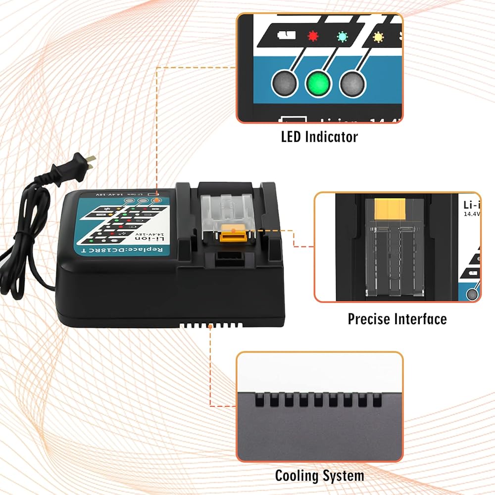 BCompatible with Makita 14.4V LXT Lithium Battery: BL1415, BL1440, 194065-3, 194066-1, BL1430, DA340DRF, BDF343