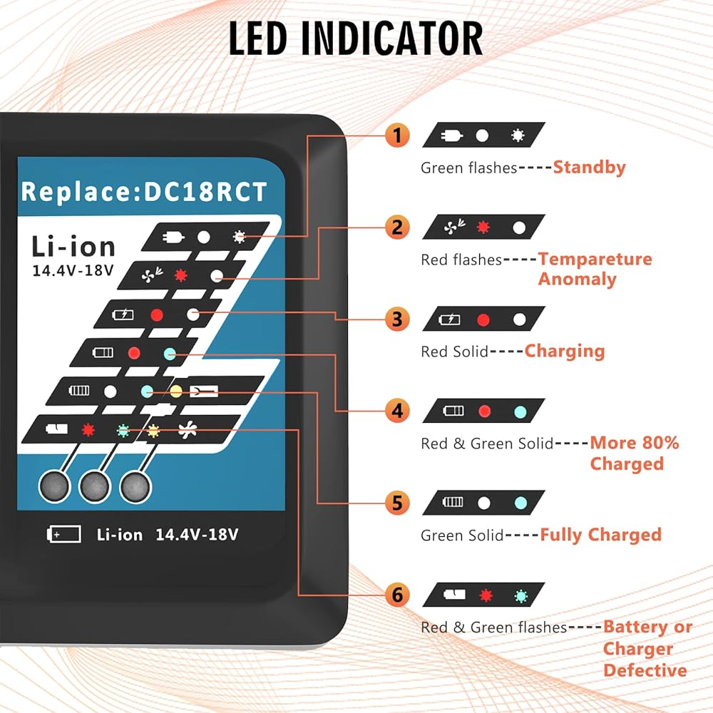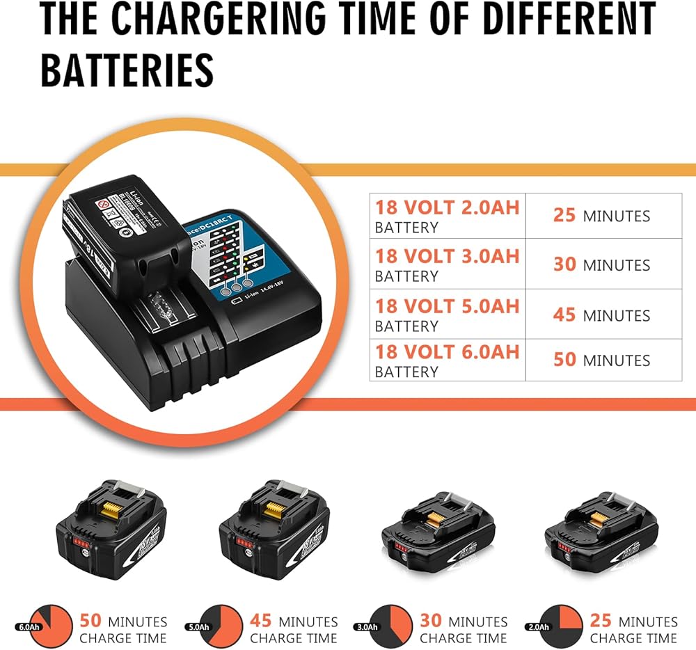 BCompatible with Makita 18V LXT Lithium Battery: BL1860, BL1850, BL1840, BL1830, BL1820, BL1815, LXT-400, 194205-3, 194204-5