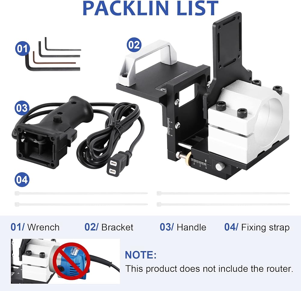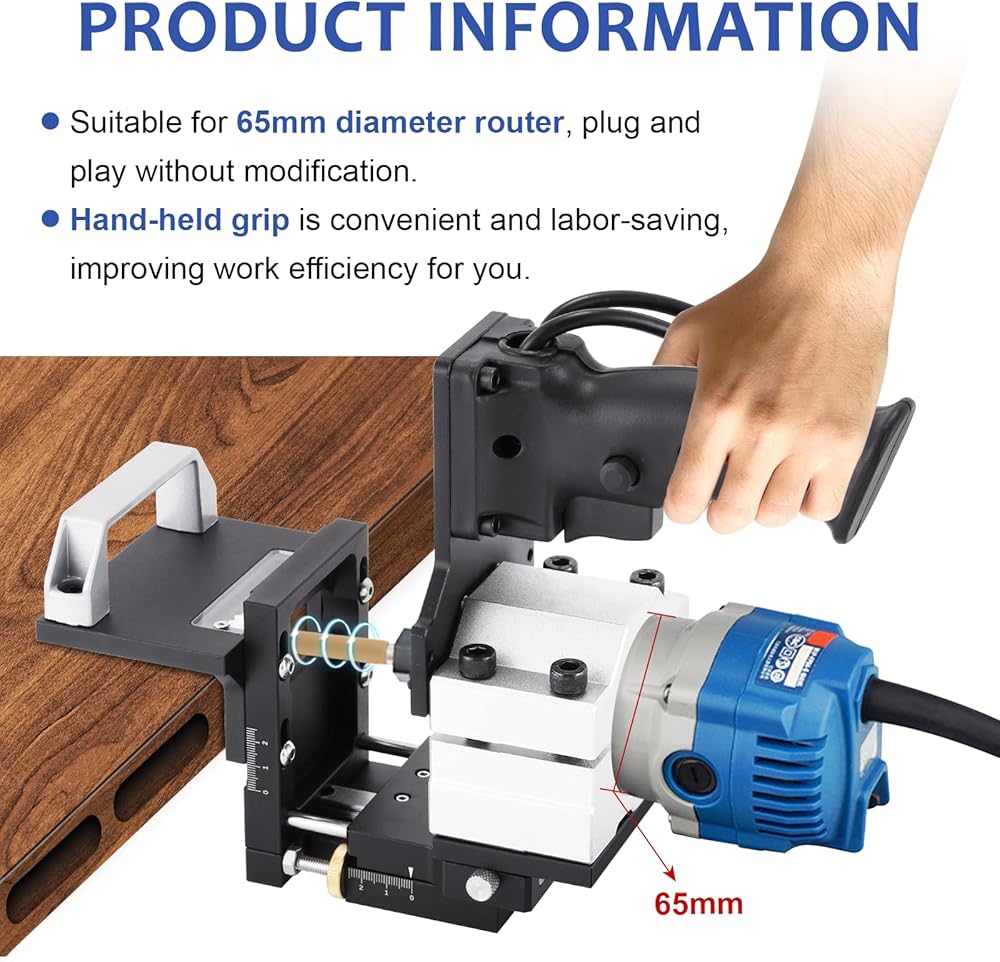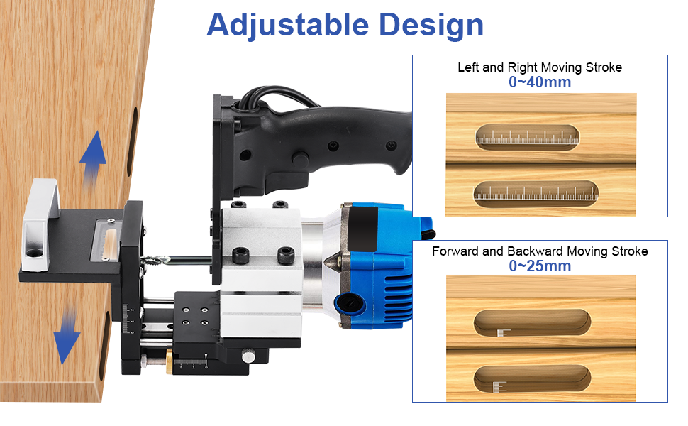 4.【Specification】: Forward and backward moving stroke: 0~20mm; Left and right moving stroke: 0~40mm;Processable board thickness: 15~40mm. Suitable for 65mm diameter router, plug and play without modification.