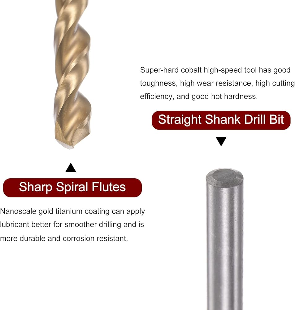 المادة - فولاذ M42 عبارة عن فولاذ عالي الصلابة من الكوبالت عالي السرعة يحتوي على 8% من الكوبالت، مع صلابة جيدة، ومقاومة عالية للتآكل، وكفاءة قطع عالية، وصلابة ساخنة جيدة. يمكن لطلاء التيتانيوم الذهبي النانوي تطبيق مواد التشحيم بشكل أفضل من أجل حفر أكثر سلاسة وأكثر متانة ومقاومة للتآكل.