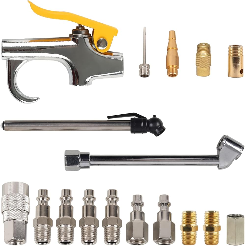 This ZaraApex 17-piece accessory is the ideal kit for any air compressor system. It has 1/4 inch industrial quick coupler, plug, connector for airline or air tools connection.