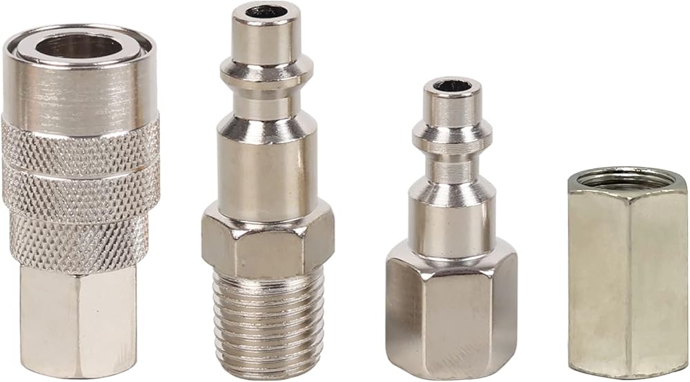 The 17-piece accessory is the ideal kit for any air compressor system. It has 1/4 inch industrial quick coupler, plug, connector for airline or air tools connection.