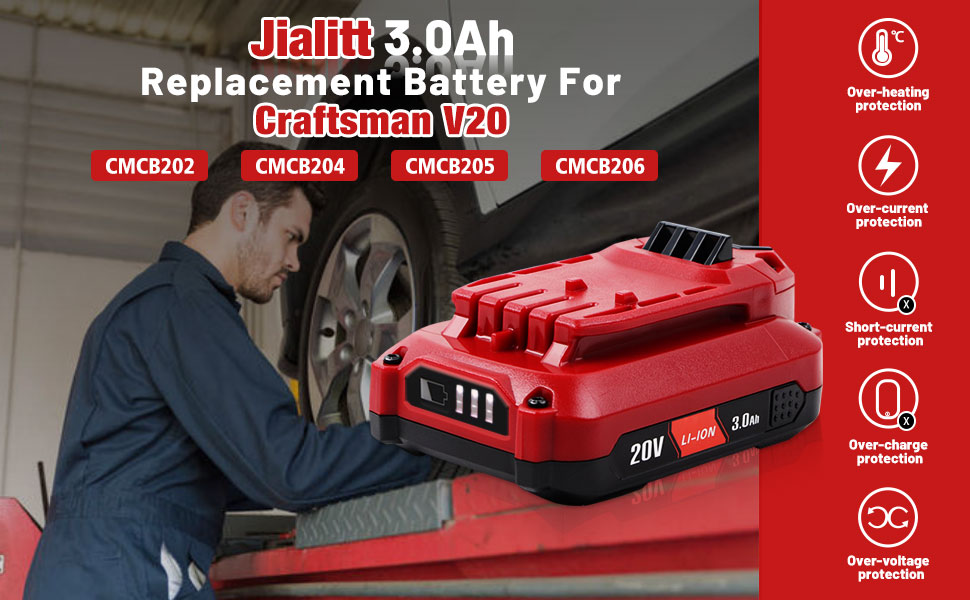 ✅【Safety & Reliable】 Craftsman 20V replacement batteries with three LED lights on the battery that display the remaining power and reduce the risk of downtime work, allowing you to monitor charge levels conveniently. Protect against overcharge, over-discharge, overpower, over-temperature, overcurrent, short circuit.
