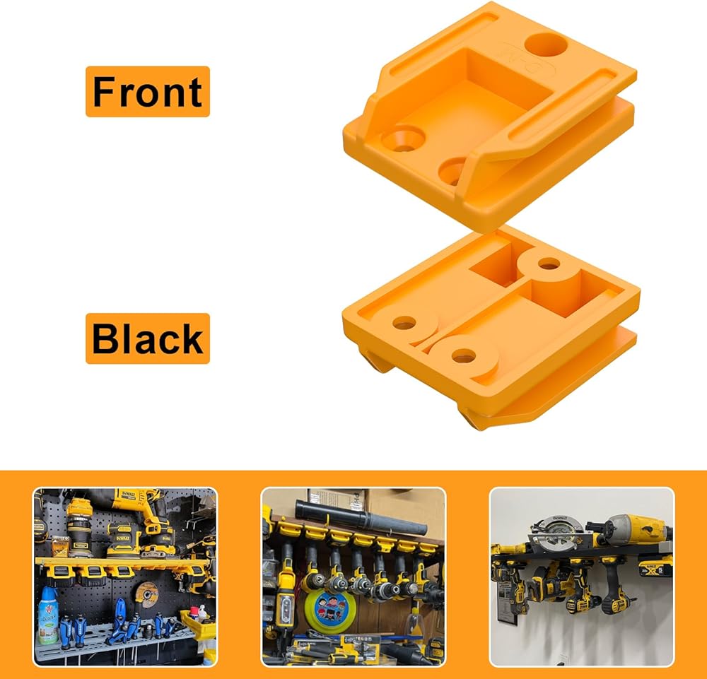 Bonadget 10Sets Battery Holder Wall Mount Compatible with Dewalt 18V-60V All Battery Holder for Wall Mount Battery Holder Yellow with Screws