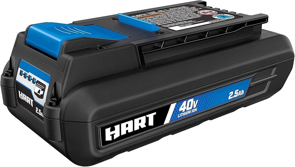 Expand your collection with the Hart HLBP011 40-Volt, 2.5 Ah battery. The fade free Lithium-Ion technology keeps your tools running longer. This battery works with all HART 40V tools for compatibility. Get ALL POWER, NO GAS. Lithium-Ion batteries are fade free, so you won't lose power during use compared to Ni-Cad. The 40V cordless system gives you all the power of gas without the hassle. You get instant, easy starting with quiet operation and no complications with oil or gas. All 40V batteries feature LED charge gauges so you always know how much charge is left. The Hart 40V System is quiet, powerful, and hassle free. Welcome to HART's 40V Outdoor System. Our family of quality lawn and garden power equipment delivers the power of gas without the hassle. The 40V system is ideal for handling larger yards and more demanding projects. All HART 40V power tools use the same rechargeable 40V lithium-ion battery, so you'll enjoy fade-free power from first cut to last. This lineup expands across string trimmers, blowers, mowers and more.