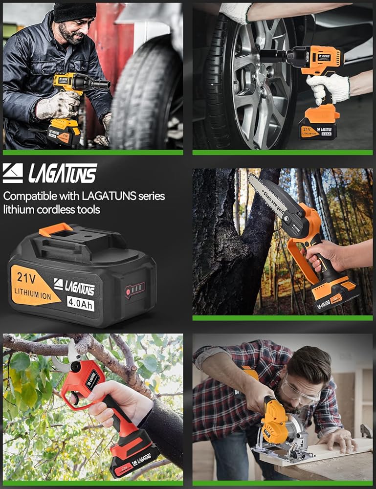 Lagatuns High Output 4.0Ah 21V Lithium-Ion Battery Replacement for LAGATUNS Tool