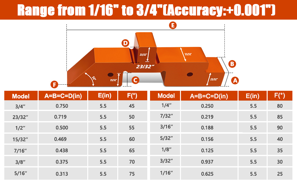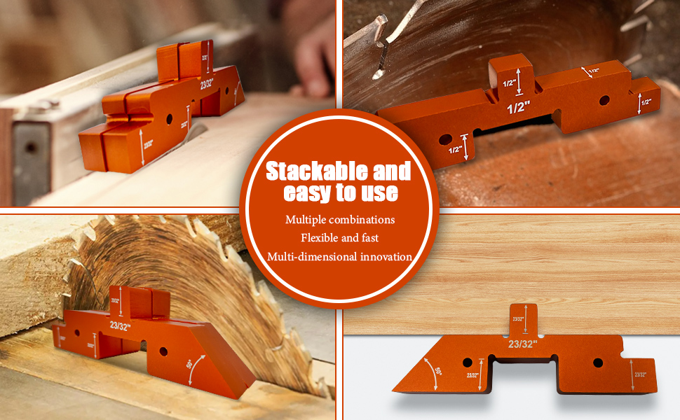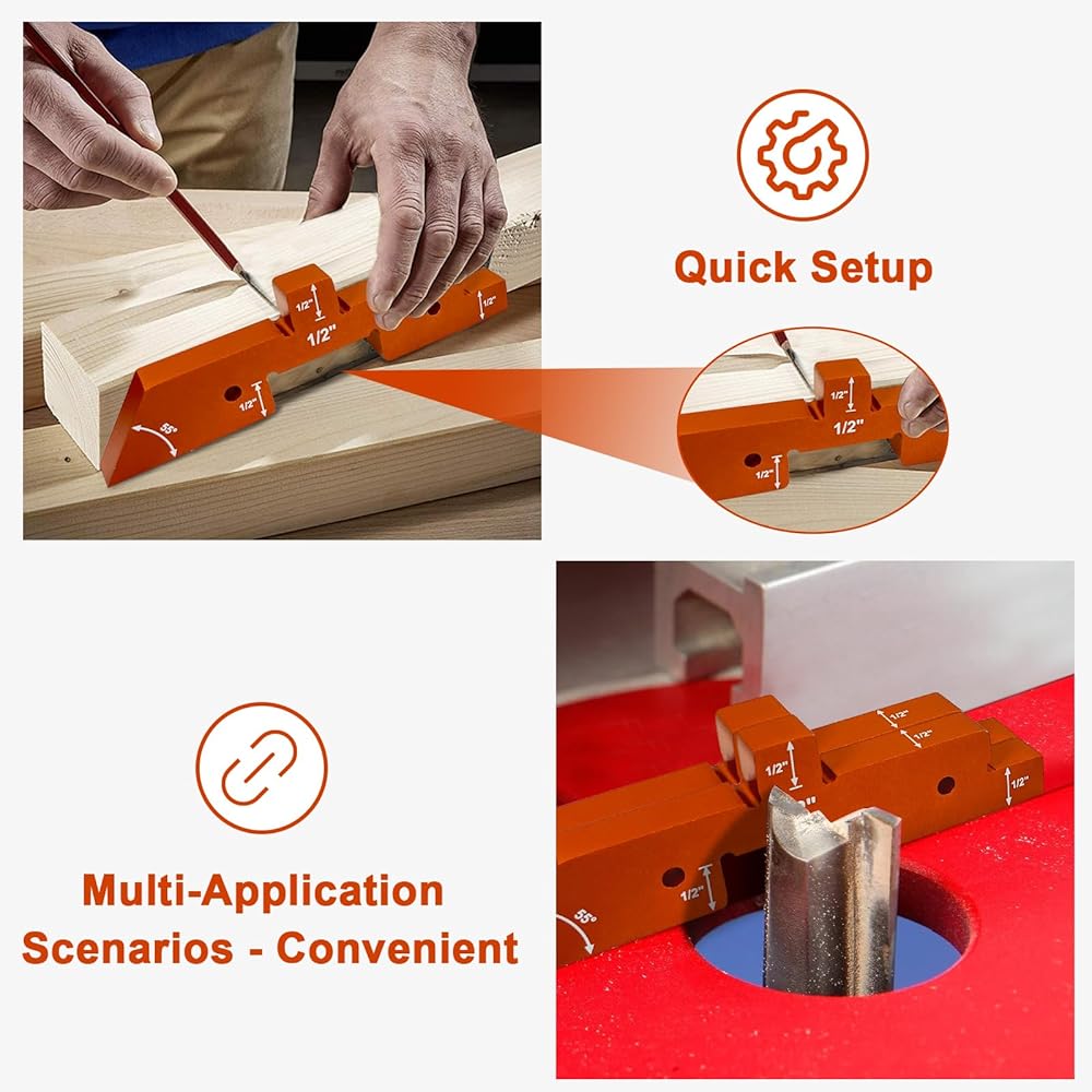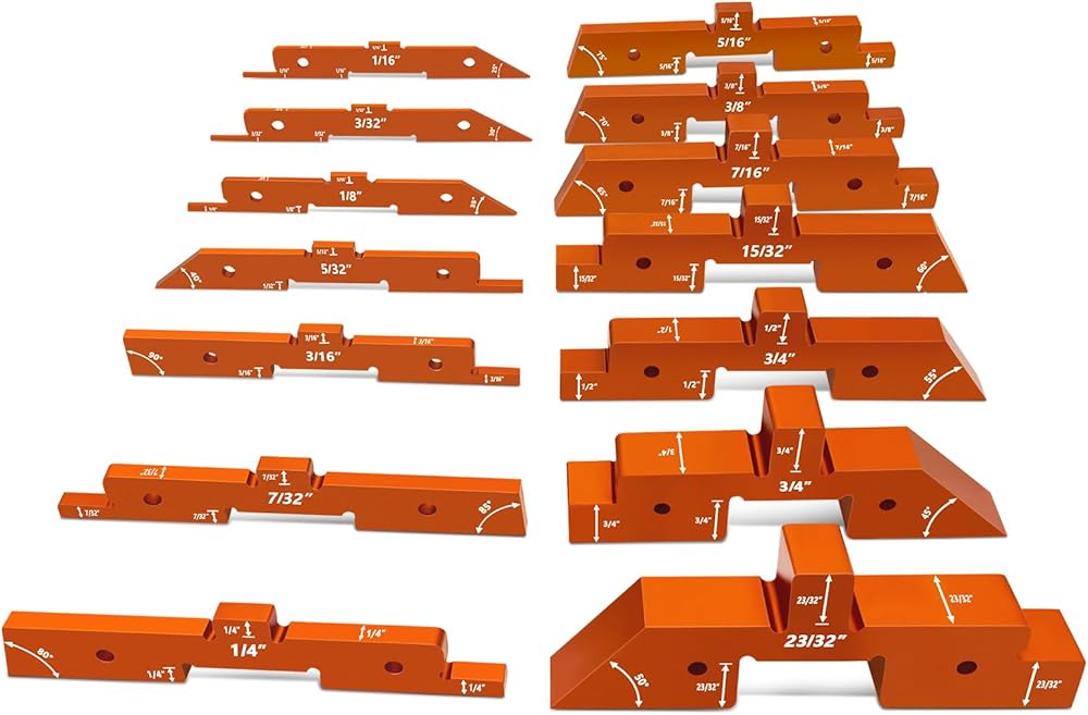 【High Quality】The 14 gauge blocks of the tool set are made of aluminum alloy and are anodized. This gives them a smooth surface that better protects your hands, router bits, table saws, and other tools. What's more, each woodworking tool block features beautifully laser-engraved labels that are clear and won't fade, allowing you to read the information with ease. For easy carrying and protection, this set also comes with a storage case.