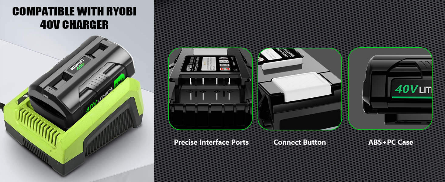 ✅【Compatible with Ryobi Tools】 Ryobi 40v lithium battery replacement compatible with Ryobi outdoor power tools - lawn mower, trimmer, weed eater and blower etc - RY40200 RY40403 RY40204 RY40250 RY40430 RY40460 RY40530 RY40402A/ R40402 RY40860 RY401110-Y RY40530. Compatible with Ryobi 40V battery chargers OP400 OP401 OP403 OP403A ZROP401 OP400A etc.(Please find more models in our descriptions)