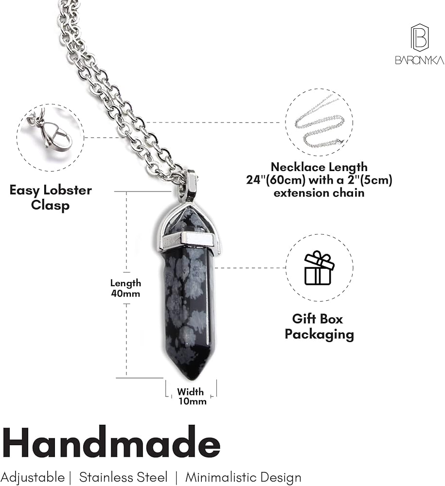 ADJUSTABLE: The obsidian gemstone necklace features an easy to use lobster clasp. The chain length is 24 inches long with 2 inches extension