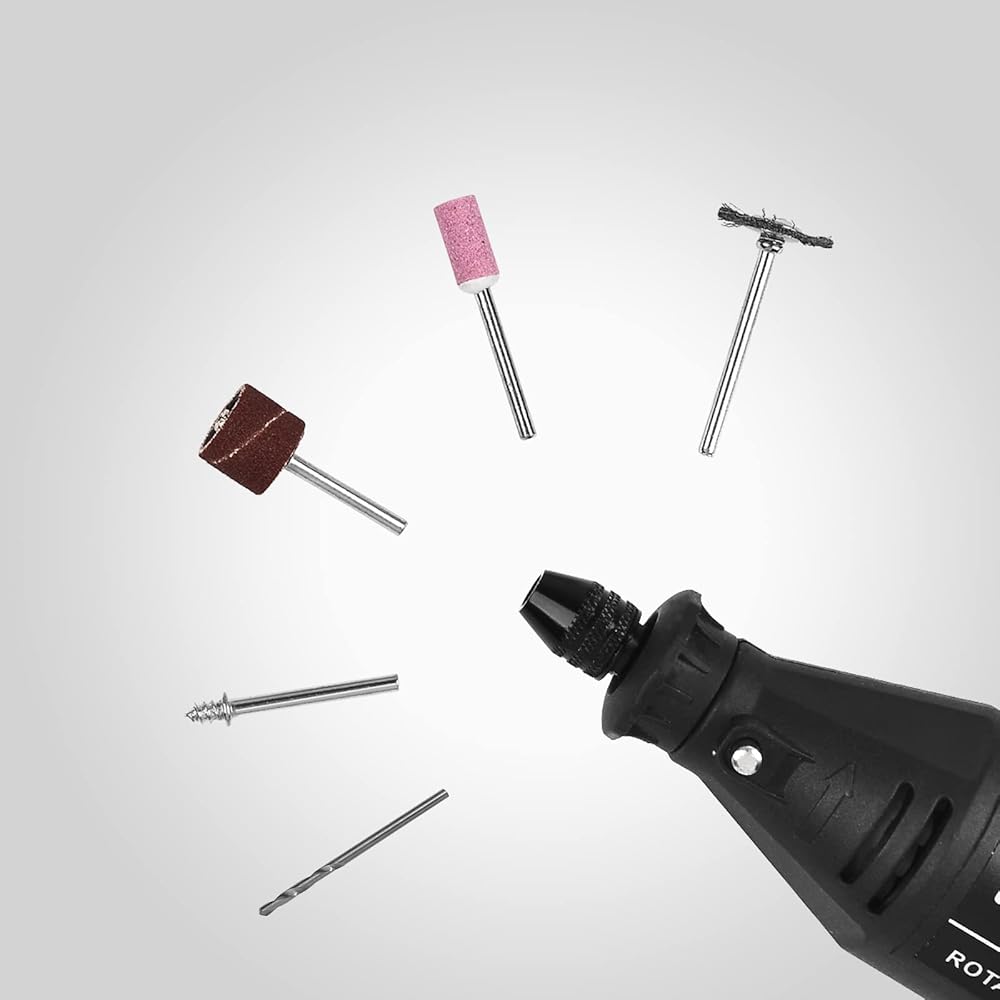 Accept accessories shank from 1/8 inch to 1/64 inch.