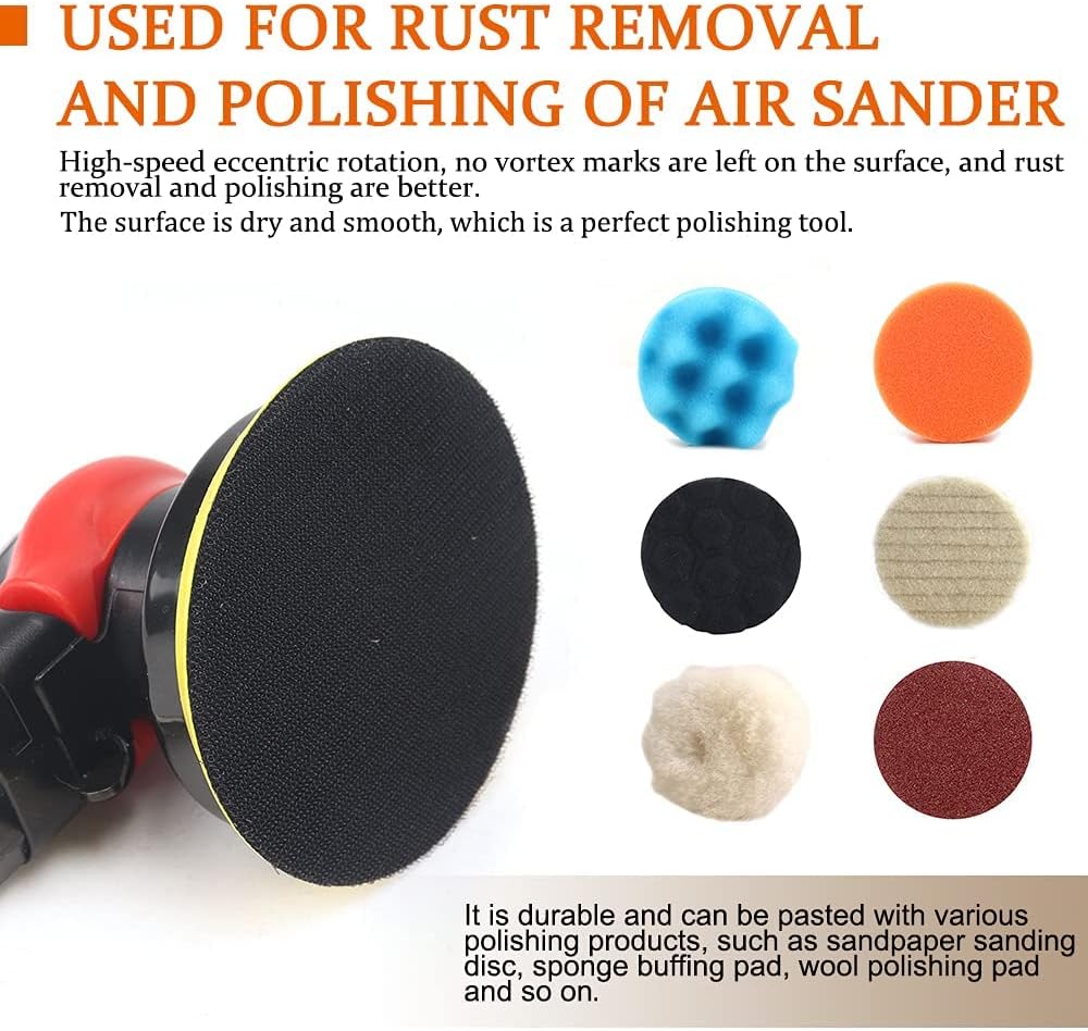 ❤ Sanding disc backing pads is used on the DA sander polisher buffer, it is durable and can be pasted with various polishing products, such as sandpaper sanding disc, sponge buffing pad, wool polishing pad and so on. Suitable for dual action air random orbit sander/polisher with 5/16"-24 Thread, great for general-purpose sanding and polishing.