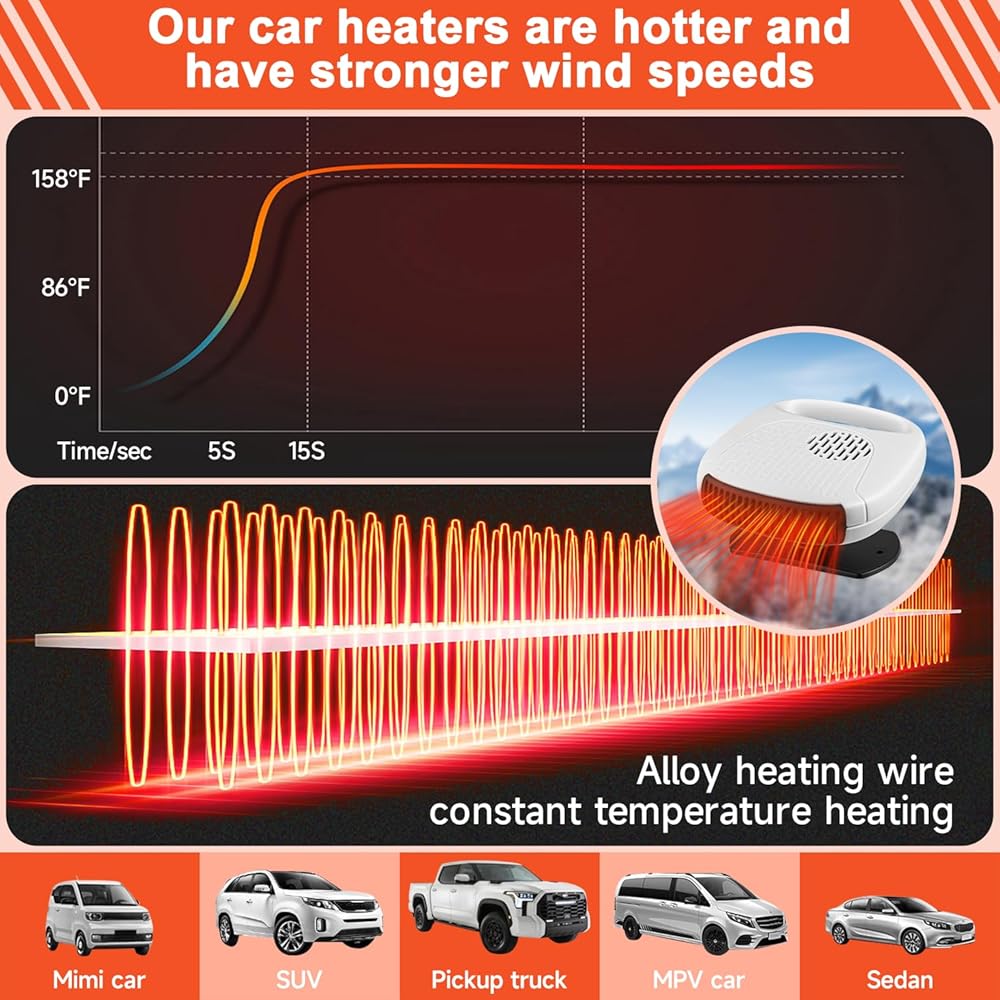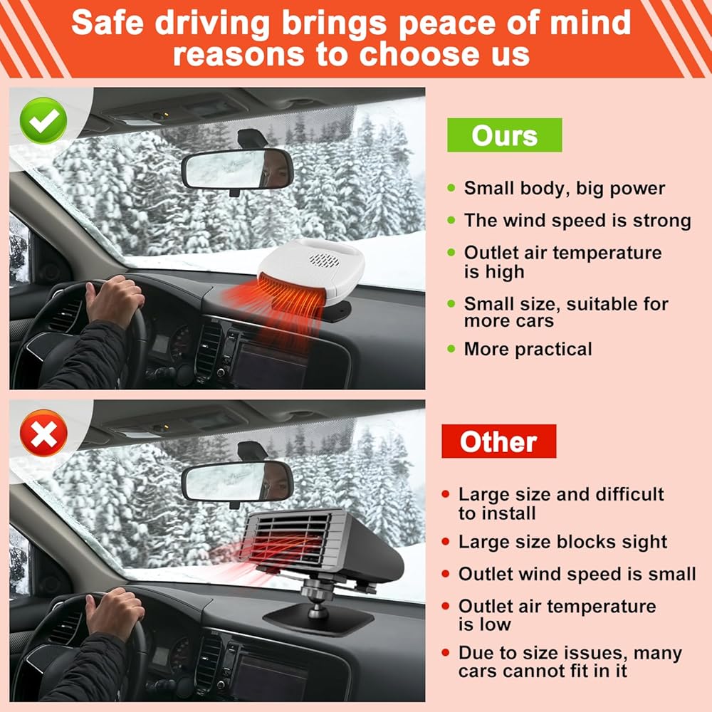 [High Power Fast Heating] Upgraded 12V car heater with a power of 120W, more suitable for car use, increasing the temperature inside the car, defogging and defrosting, and increasing driving safety. It is a good assistant in the car in winter.