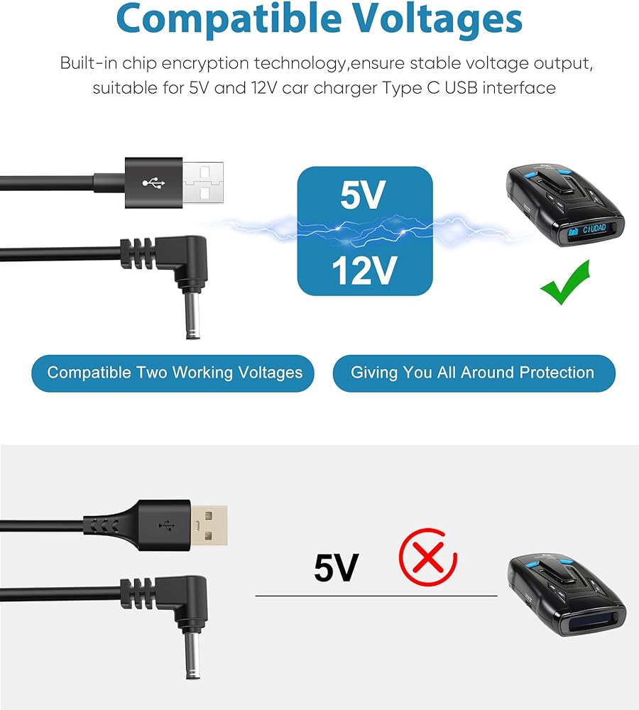 ✅【Well Made】The radar detector power cable is made of High-quality copper wire by using plastic injection molding technique, not easy to damage during the use