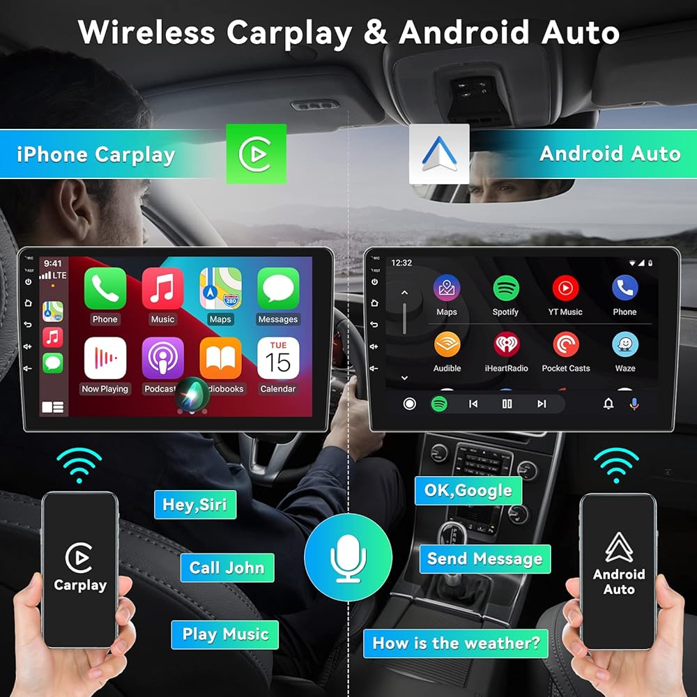 【Wireless Carplay and Android Auto】Built-in wireless Anpple Carplay and Android Auto, seamlessly integrates your phone, making it easy to access mobile phone contacts, email, notification, map navigation, music, video and other information, and also implement voice assistant.