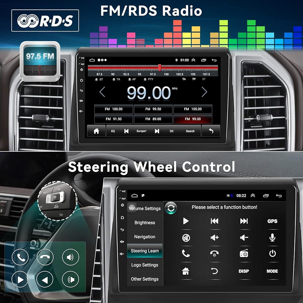 【Multimedia Stereo System for Car】①Included a FM/RDS tuner for Live broadcasting; ②Keep original steering wheel key control functioning; ③ HiFi Equalizer for dynamic sounds quality; ④Support USB input which also charges your device; ⑤Ability to add subwoffer and Amplifier (not included).
