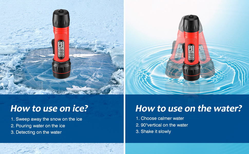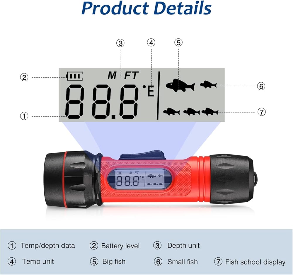 Portable and Easy to Use: No bigger than a flashlight, the handheld depth finder is small enough to fit just about anywhere. Simply add four AA batteries and the unit is ready to go with a flip of a switch. All you have to do is place the front of the device in the water and get a reading on its backlit LCD screen.
