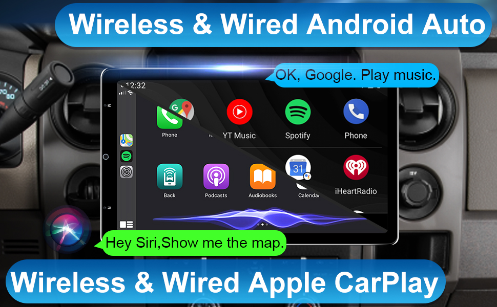 【Works with Wireless CarPlay & Wired CarPlay】 The smarter, safer and more fun way to use your iPhone in the car. Apple_CarPlay takes the things you want to do with your iPhone while driving and puts them right on this android car stereo, you can get directions, make calls, send and receive messages, and enjoy your favorite music. With Siri Voice Control, control with a word or a touch, super convenient.