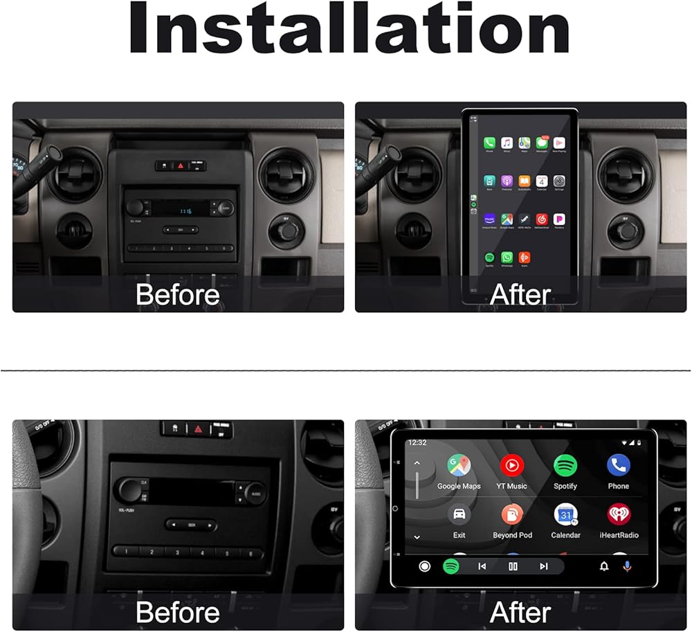 13.3 Inch Double Din Car Stereo for Ford F150 Focus Wireless CarPlay Wireless Android Auto Rotatable Touchscreen 8-Core 4G+64G Android Car Radio Tesla Style AM/FM GPS Navigation Bluetooth WiFi 2 Din