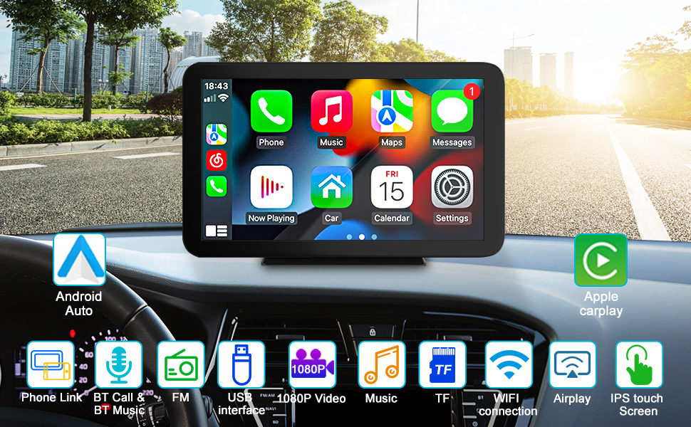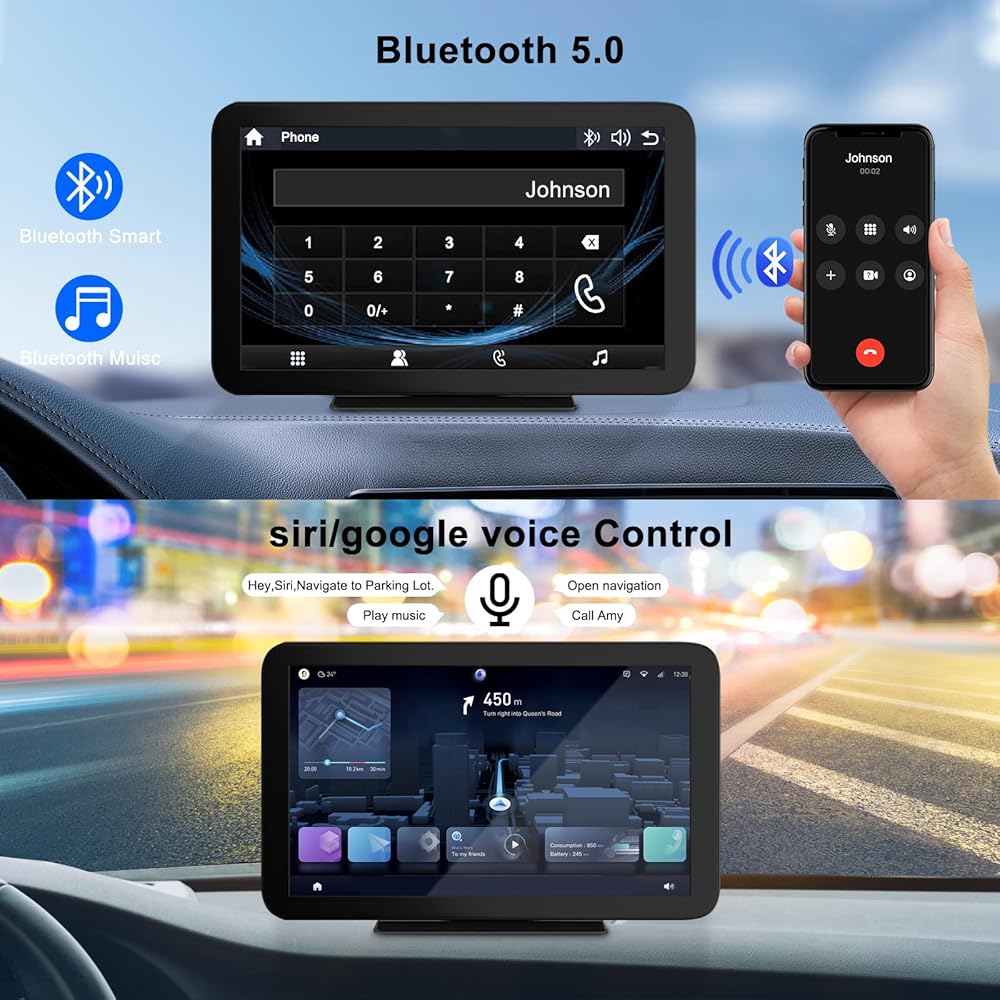 【 Wireless/wired Apple Carplay&Android Auto】This car stereo supports wireless/wired Apple Carplay/Android Auto. just connect to your smartphone via Bluetooth. You can handle navigation, music, etc. via wireless. You can even connect your device's Google or Siri assistant to listen to music, make calls, navigate, etc. via voice control, freeing your hands to focus on driving!