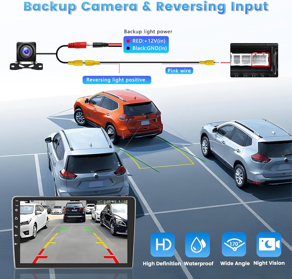 ⚡[𝐀𝐇𝐃 𝐁𝐚𝐜𝐤𝐮𝐩 𝐂𝐚𝐦𝐞𝐫𝐚 & 𝐒𝐭𝐞𝐞𝐫𝐢𝐧𝐠 𝐖𝐡𝐞𝐞𝐥 𝐂𝐨𝐧𝐭𝐫𝐨𝐥] When the car stereo for toyota yaris is connected to the reversing camera, once you put the car in reverse gear, for toyota yaris carplay will automatically display the reversing image, making your daily parking safer. The bluetooth car stereo also supports the steering wheel button function, through which you can control the desired functions.