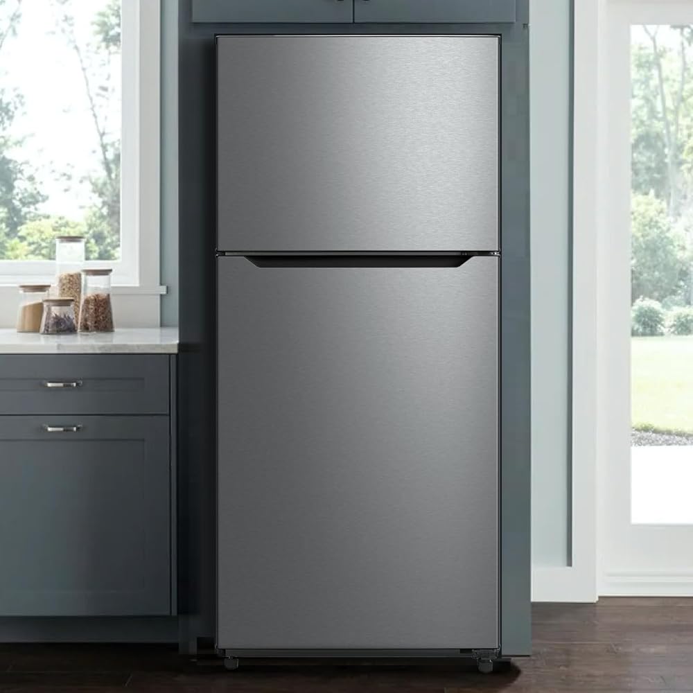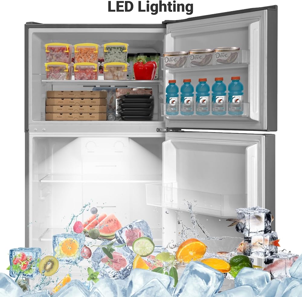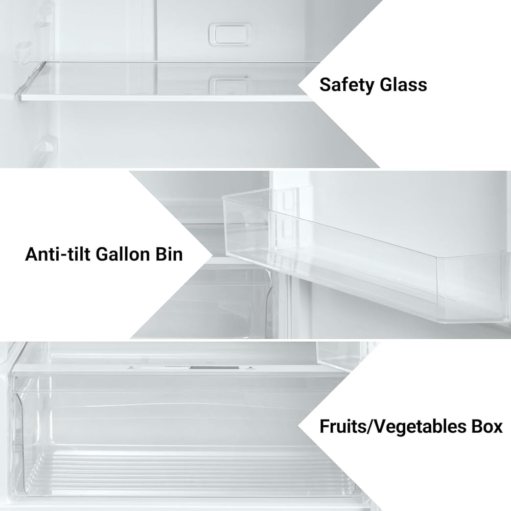 【Reliable Cooling Performance & Frost Free Defrost】Techomey top freezers have an efficient cooling system that incorporates improved refrigerants, an upgraded R600a compressor, and an enhanced evaporator. Intensive air circulation leads to steady and even temperature throughout the refrigerator compartment to prevent warm spots and unwanted freezing and keep the freshness, aroma, and nutrients of the fruits, vegetables, and meat much longer.