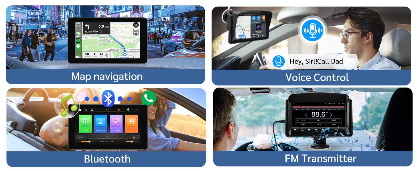 🚙Unique Design, Widely Applied: The top design of the car carplay screen comes with a sunshade, which allows you to see the screen clearly under strong sunlight, greatly improving driving safety. the working voltage of this portable car play audio is 12v~24v, which is suitable for all types of cars, suvs, rvs, campers, vans, trailers and so on.