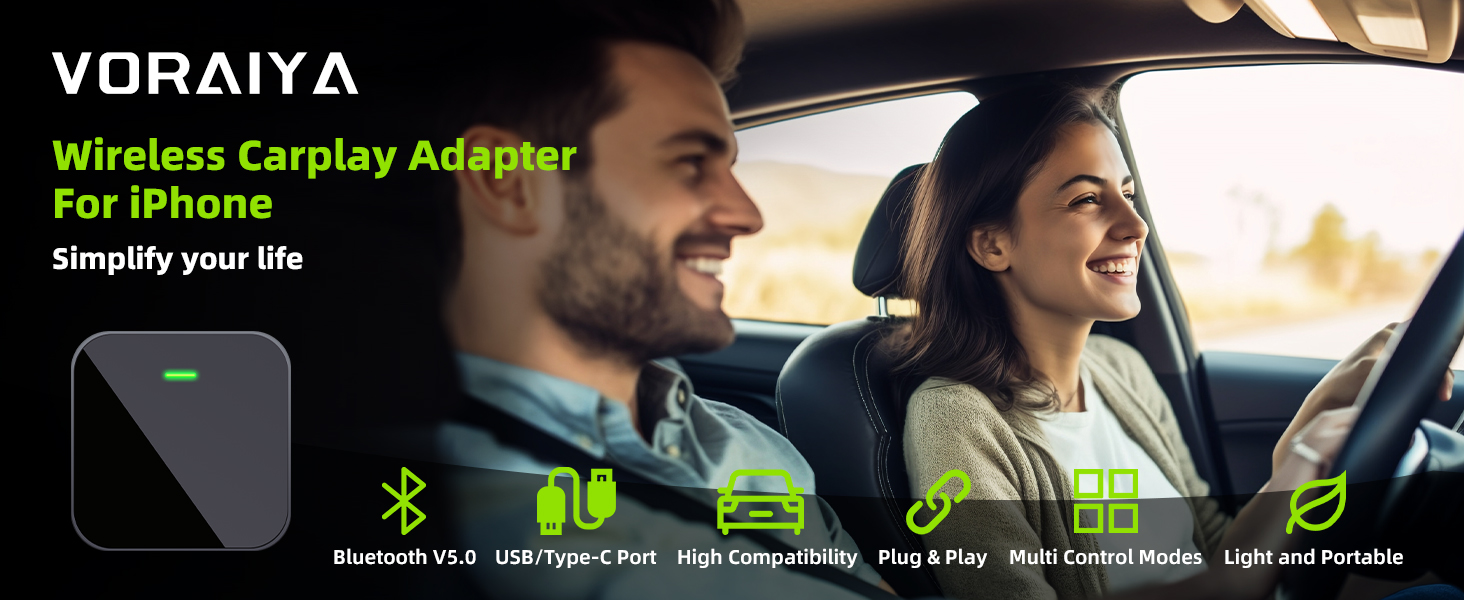 Voraiya Wireless CarPlay Adapter for iPhone, Newest Apple Carplay Wireless Adapter Convert Wired to Wireless CarPlay Dongle, Plug & Play, Fast Easy Use, 5Ghz WiFi Auto Connect for Cars from 2015+