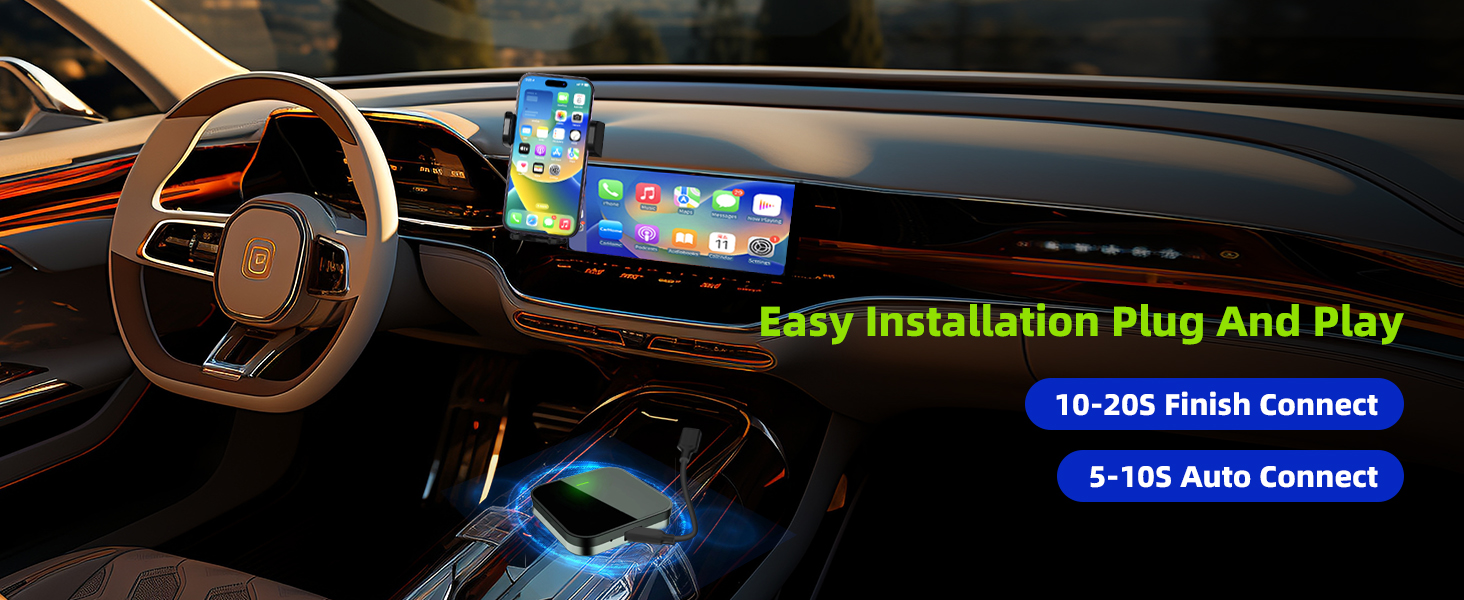✔️【CarPlay Wireless Adapter】Get rid of the clutter of wires in your car with the CarPlay wireless adapter. It totally reduces the damage of frequent plug and unplug the charging cable into your phone. Enjoy all the features of CarPlay, including navigation, music playback, Siri, and phone calls. The wireless carplay adapter perfectly compatible with your original car control such as voice control, steering wheel, touchscreen, and knob operations.