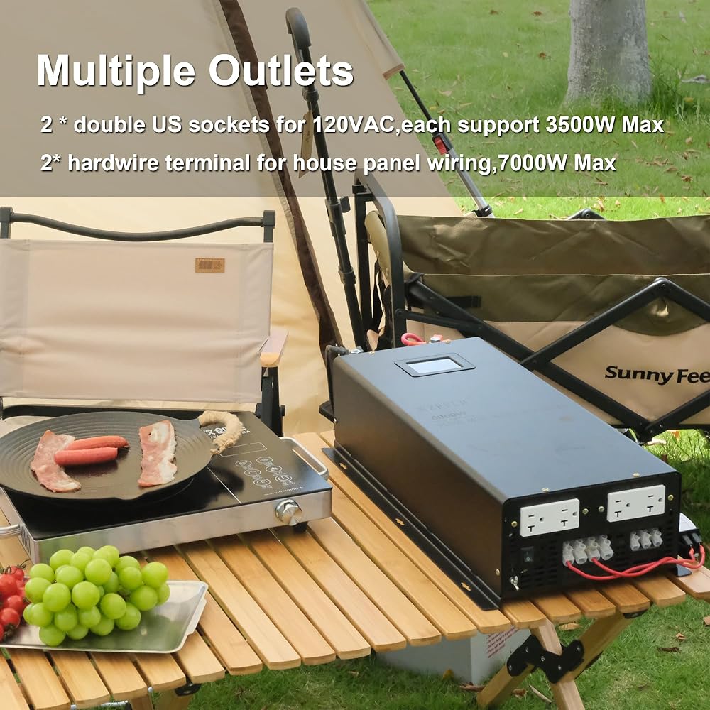 WZRELB 7000W 24V Pure Sine Wave Inverter,24 Volt DC to AC 120V 240V Split Phase Power Inverter,2*AC Hardwire Terminal,14KW Surge,High Efficiency up to 91.6%,Wireless Remote
