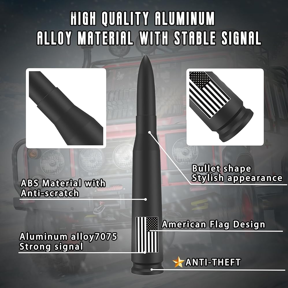 【HIGH-QUALITY MATERIALS】50 Cal Round Aluminum 5.5" Antenna is made of high quality t-7075 aluminum billet and copper coil. The conductivity is twice that of aluminum and five times that of steel. Excellent AM/FM reception regardless of the weather. It's also hard-anodized and comes with a scratch-resistant metallic paint to ensure it won't peel or fade over time.