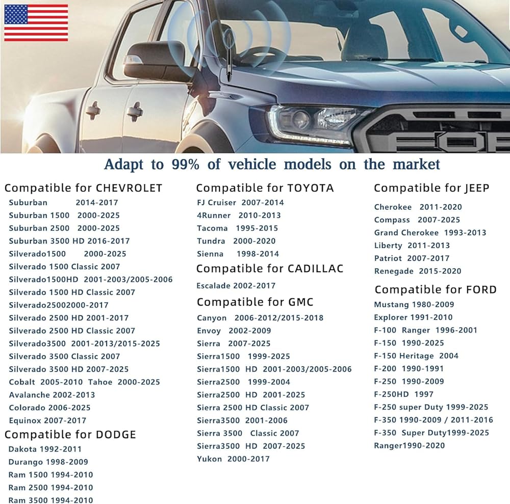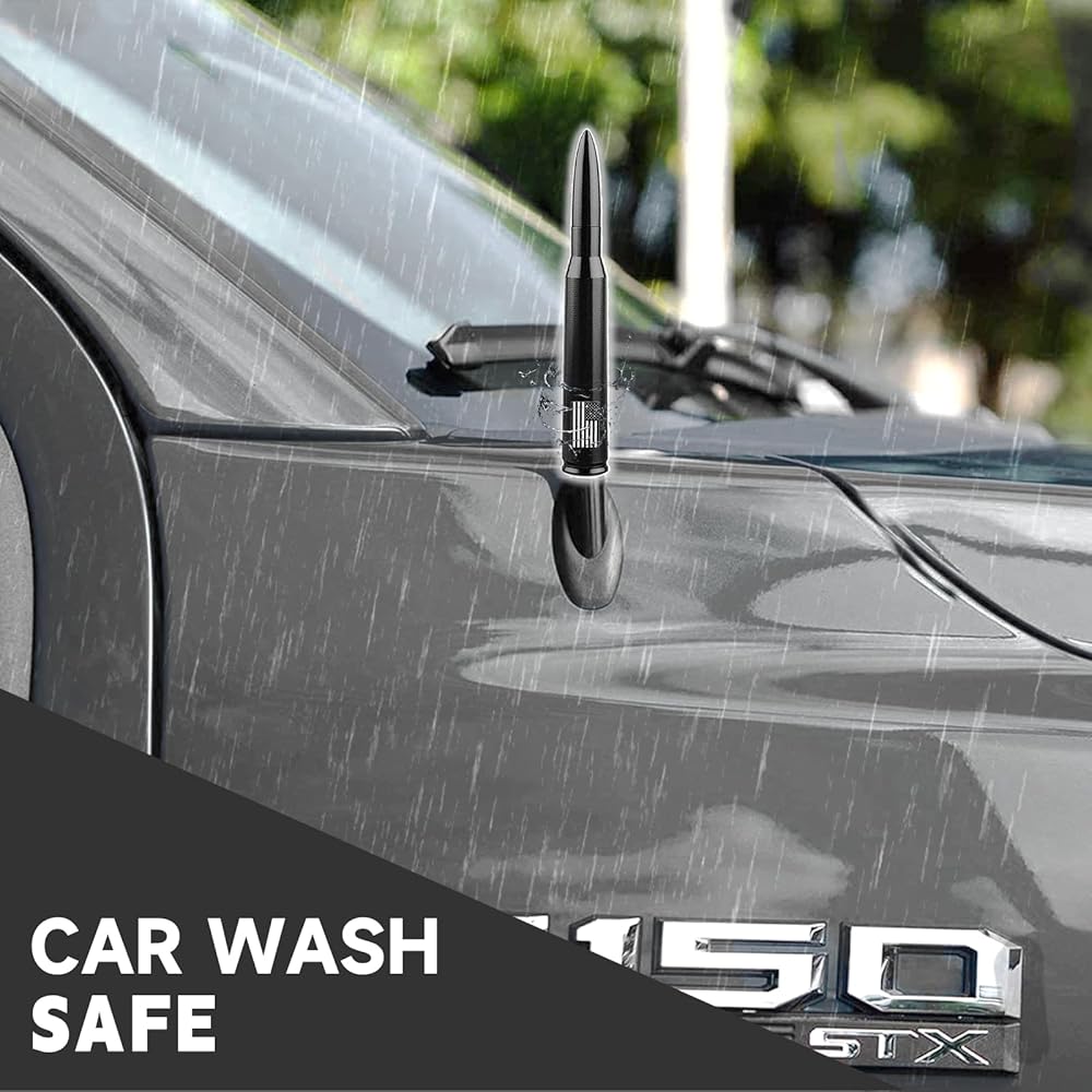 【TRENDY APPEARANCE】Anti Theft Design ,America Flag Style, Fashion shaped antenna with smooth curve and smooth appearance, in addition, it is also suitable for pickup trucks, off-road vehicles and other atmospheric vehicles, and is suitable for any weather. It is short and sturdy, can withstand car washing, and will not be easily bent or damaged.