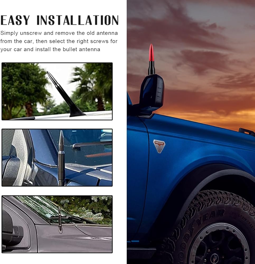 【Thoughtful Design】: The antenna is designed with a short bullet head, which is more beautiful compared to the factory product, making your car more attractive to the eye. On the other hand, the product is made of metal and has excellent waterproof performance, which can ensure that you can wash your car at any time without worrying about it.